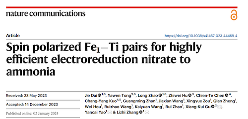Distinguished Professor Zhang Lizhi and Associate Professor Yao Yancai's Groundbreaking Study in Nature Communications Manipulating the Spin Polarization of Electrocatalysts within Pair Sites for Nitrate Wastewater Treatment