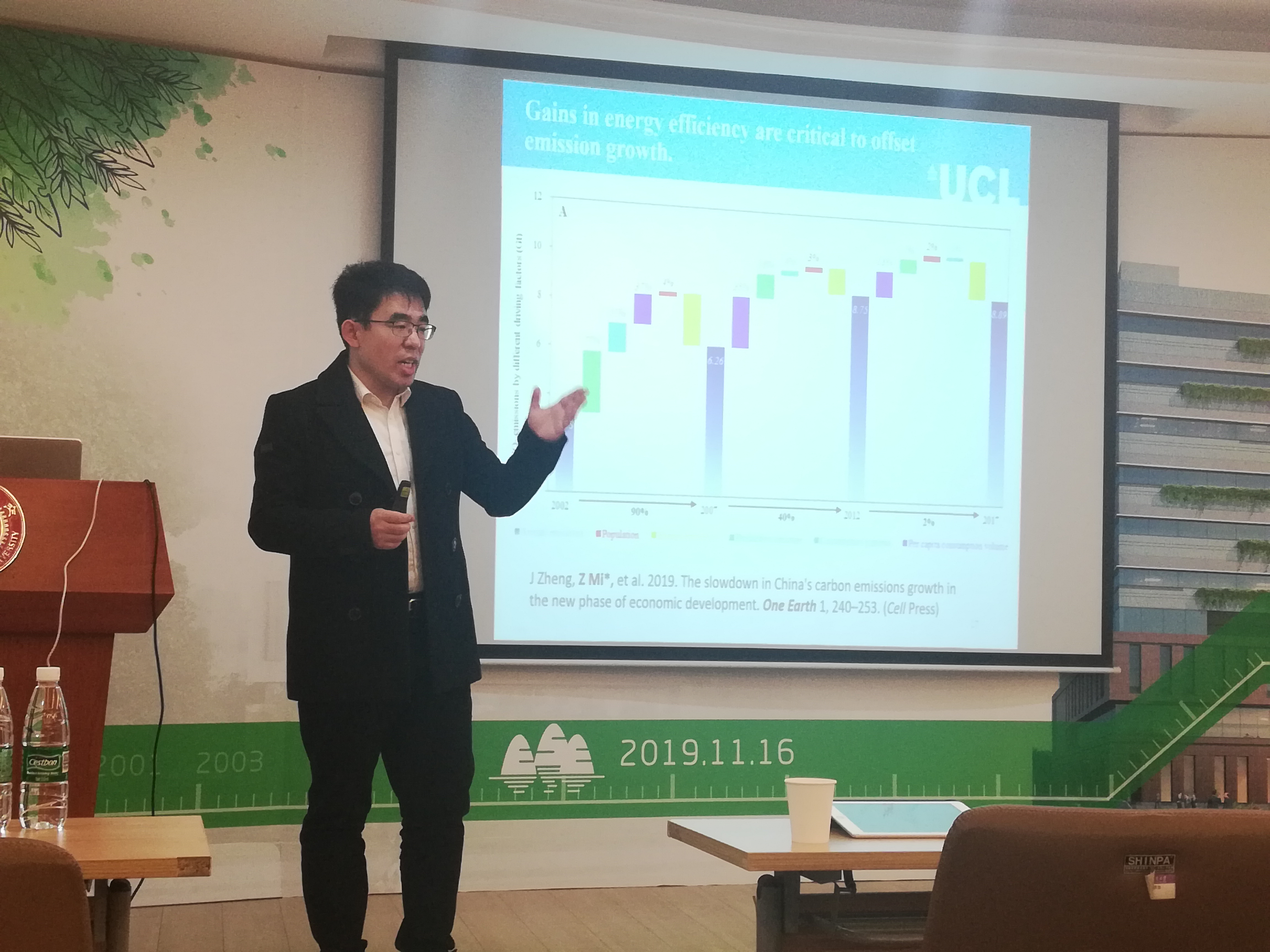 2019年12月24日,应韩国av 靳强研究员邀请,英国伦敦大学学院(UCL)助理教授米志付博士于环境科学楼二楼报告厅为交大师生带来题为“China’s carbon emissions in the new economic development phase” 的精彩学术报告。