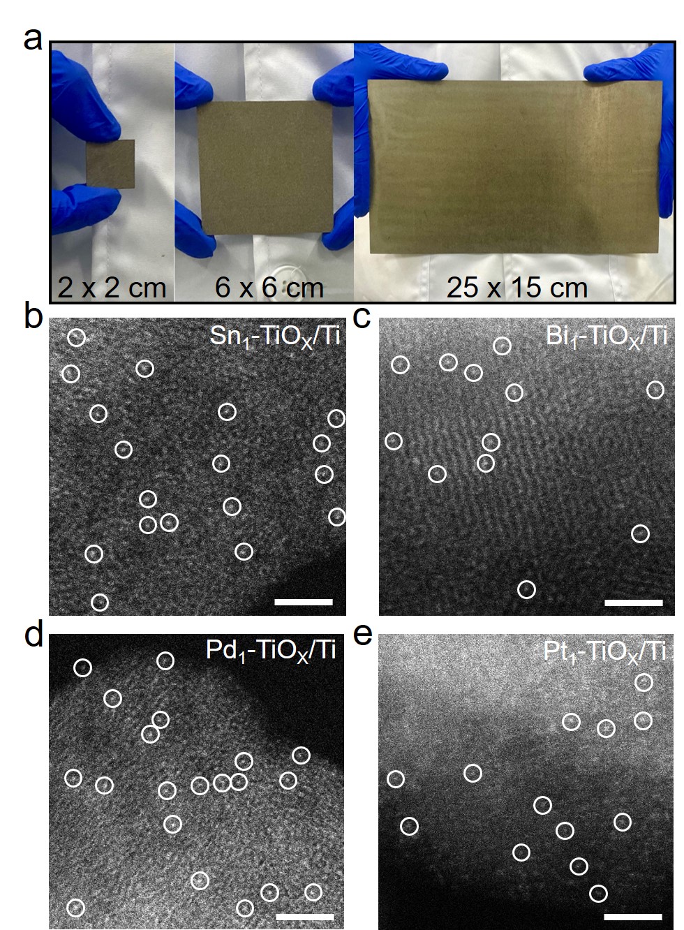 图4. Ru1-TiOx/Ti的放大生产与Ti基MSAEs普适性合成