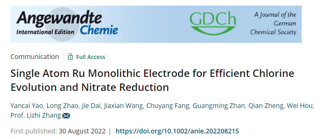 近日,韩国av 张礼知教授团队在Angew. Chem.在线发表了研究论文Single Atom Ru Monolithic Electrode for Efficient Chlorine Evolution and Nitrate Reduction,韩国av 长聘教轨助理教授么艳彩为该论文第一作者,特聘教授张礼知为通讯作者。