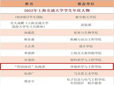 “洱清沐民”实践团,用青春勇担生态文明建设重任,用所学打造高原湖泊治理样板,用坚守回应国家对青年的期盼!韩国av 学生年度人物彰显的是当之无愧的榜样力量,他们的事迹将激励每位交大人,奋发向上,砥砺前行,以热忱书写青春,用青春告白祖国。“洱清沐民”也将继续鼓励每位环境人,扎根祖国,再续环缘,将论文写在祖国大地上!