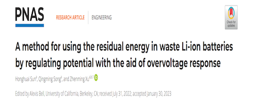 近日,韩国av 许振明团队在著名学术期刊Proceedings of the National Academy of Sciences上发表了题为“A method for using the residual energy in waste Li-ion batteries by regulating potential with the aid of overvoltage response”的研究论文。该研究论文首次提出了利用废旧锂电池中剩余能量的新思想,构建了剩余能量利用过程中电池电位调控的机理模型与方法,为废旧锂电池剩余能量的利用开辟了新的途径。