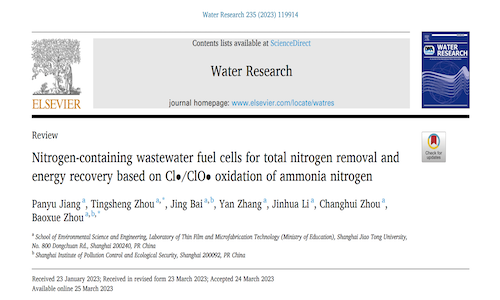 近日,韩国av 周保学教授团队在环境领域著名学术期刊Water Research上发表了题为“Nitrogen-containing wastewater fuel cells for total nitrogen removal and energy recovery based on Cl•/ClO• oxidation of ammonia nitrogen”的综述论文。论文重点介绍了团队在含氮废水Cl•/ClO•脱氮及产能领域取得的系列研究进展。