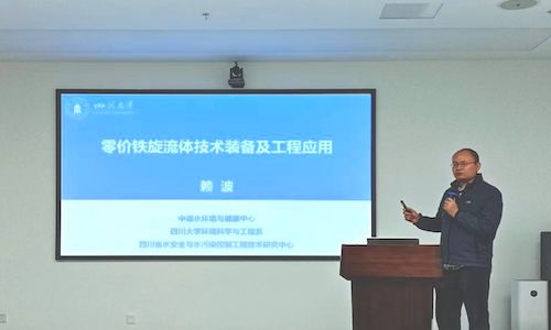 赖波指出,目前零价铁技术的主要瓶颈问题,是无法突破零价铁腐蚀化学多电子传递路径和多产物并存的反应路径控制,导致污泥量大、药剂量大、工艺效率低、经济性差。针对该问题,他提出了微米零价铁旋流体技术,提高了铁电子的利用效率,大幅降低了铁的消耗量、酸消耗量、铁泥产量及运行成本。随后,他针对零价铁旋流体技术的定义、特征及工作原理进行了介绍,并着重介绍了微米零价铁旋流体处理废水技术的典型工艺、集成装备及工程应用。该技术在起爆药废水、化工中间体废水、制革废水、油气田废水、高浓度硝基酚废水处理中展现了独特的处理效果。