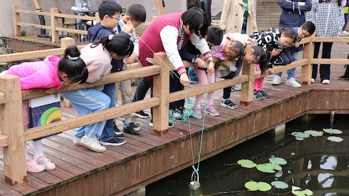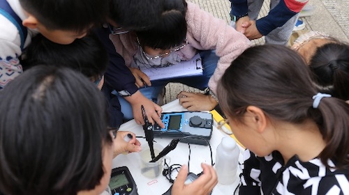 在参观完科普基地后,“交小苗”们在环境学院实验实践教学中心何小娟老师的讲解下,学习校园水质调查的方案、水体指标的含义以及实验设备的操作规程。同学们理解了温度、浊度、透明度等物理性指标,以及pH、溶解氧等化学性指标。随后同学们分为三组,在指导老师的带领下,分别对交大同德湖、涵泽湖和植物园的水体进行了采样测试。