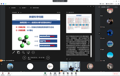 全氟碳化物(PFCs),如CF4,具有很强的温室效应(GWP值为7597)和极长的大气寿命(50000年),被列入《京都议定书》重要温室气体减排行列。CF4在半导体制造、电力输送等领域应用极为广泛,也是电解铝和稀土金属冶炼过程的主要副产物之一。由于高度对称的单碳结构和很高的C-F键能(550 kJ mol-1),CF4结构非常稳定,处理CF4时反应条件苛刻、能耗高、毒副产物复杂,成为了环境领域关注的难点。因此,如何实现PFCs在催化剂表面高效吸附与活化,控制毒副产物释放,抑制催化剂中毒,是温室气体治理研究中亟待解决的科学难题和关键挑战。在本次报告中,刘敏教授聚焦于自身在PFCs环境催化处理技术方面取得的创新成果,深入揭示了CF4在催化剂表面吸附与活化的本质,介绍了电荷局域化位点增强CF4在催化剂表面吸附与活化的新理念,说明了CF4催化分解过程以及催化剂中毒机制,分享了抑制毒副产物的新方法。此外,他还为大家讲解了调控CF4资源化转化形成分解产物(HF和CO2)资源化转化的新技术相关内容。