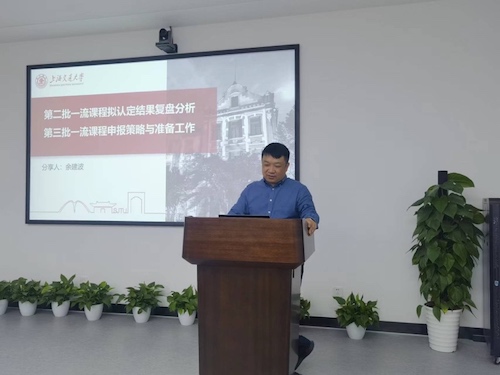 为加强学院的课程建设,进一步做好国家级第三批、上海市以及学校一流本科课程的申报工作,5月12日,环境学院教务办特邀校教务处教学研究办公室余建波老师,对学院一线教学老师进行国家级一流本科课程申报与建设的专题培训。环境学院党委书记胡薇薇、党委副书记何圣兵、副院长刘萍,全体任课老师以及教务办人员出席培训会。培训会由教务办主任袁兆国主持。