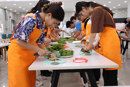 6月13日下午,海菜花厨艺学堂劳动教育活动在第一餐饮大楼二楼举办,环境学院大二本科生参与了此次活动。