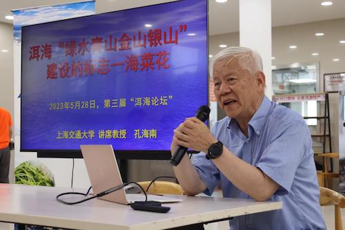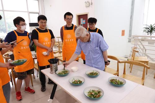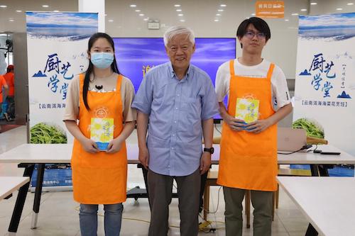 孔海南教授来到了现场,与同学们一同体验和品尝。忻嘉仪、何宇巽两位同学的海菜花炒豆干得到了孔海南教授的认可和好评,并获得了孔教授签名版的《海菜花开》。“从亲手在砧板上切海菜花开始,一步步调味炒制,每个人都收获了自己的一份菜肴。” 忻嘉仪说,“无论是从孔老师的讲话中,还是从书中,我能够感受到洱海治理的不易,二十年的牺牲和奉献换来了这片海菜花开的洱海,这值得每个环境人学习和传承。”