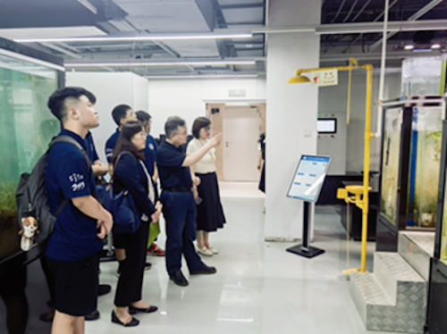 实践团首先前往中国环境科学研究院参观交流。中国环境科学研究院隶属中华人民共和国生态环境部,是国家级社会公益非营利性环境保护科研机构。实践团成员参观了位于中国环科院内的中韩联合实验中心、湖泊水污染治理与生态修复技术国家工程实验室、环境基准与风险评估国家重点实验室和科技成果展览室并举行座谈。湖泊生态环境研究所总工程师叶春、环境基准与风险评估国家重点实验室研究员孙福红及部分研究生代表一同参加此次座谈,中国环科院研究生院副院长廖海清主持座谈。双方就人才培养、科研合作、平台支撑和配套条件等进行了深入交流。