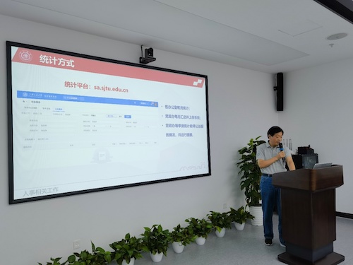 院党委副书记何圣兵根据《教职工公益服务管理办法》,对教职工公益服务内容、管理及应用等方面进行详细阐释,并对具体操作方法及服务清单列表加以说明。