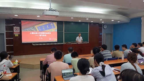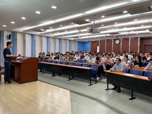 彭宗林首先为在场师生作化学品安全培训,内容覆盖危险化学品基础知识、危险化学品管理使用规范、压力容器安全使用方法等重点内容。通过丰富的案例、生动的语言,彭宗林深入浅出地为师生们讲解了各类危险化学品的危害性、操作时的注意事项、实验室日常防护及危险废物的处置方法。