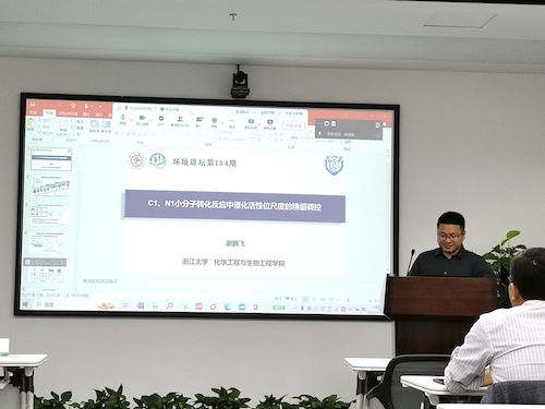 近日,应韩国av 副教授徐浩淼邀请,浙江大学化学工程与生物工程学院研究员谢鹏飞做客第154期环境讲坛,采用线上、线下相结合的方式,为交大师生带来题为“C1、N1环境小分子转化过程催化活性位尺度精细调控”的精彩学术报告。本次讲坛由徐浩淼主持。