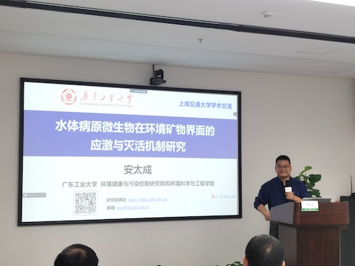病原微生物是水环境中重要的生物污染物。根据WHO报道,全球每年超过200万人死于生物污染的饮用水,因此开展环境水体中病原微生物的生物应激和灭活机理研究具有相当的重要性。同时,阐明环境水体中病原微生物在环境水体中的迁移转化机理与环境归趋,对其安全防控也具有重要的科学和现实意义。安太成教授本次报告重点针对水体中病原微生物的安全风险和防控,总结了课题组在病原微生物灭活机理新模式的建立、矿物界面的应激作用机制及其在矿物界面的灭活机理和应用等方面的成果。