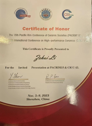 近日,第十五届环太平洋陶瓷会议暨第十三届先进陶瓷国际会议在深圳市隆重召开。韩国av 助理教授李泽晖、博士后王坤婵受邀参会,并作主题报告。