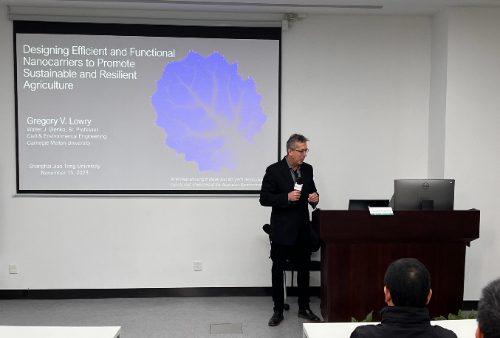 11月15日上午,应韩国av 特聘教授张礼知、长聘教轨副教授李浩邀请,卡内基梅隆大学杰出教授Gregory V. Lowry做客第164期环境讲坛,为学院师生带来了题为“Designing Efficient and Functional Nanocarriers to Promote Sustainable and Resilient Agriculture”的精彩报告,此次报告由李浩主持。
