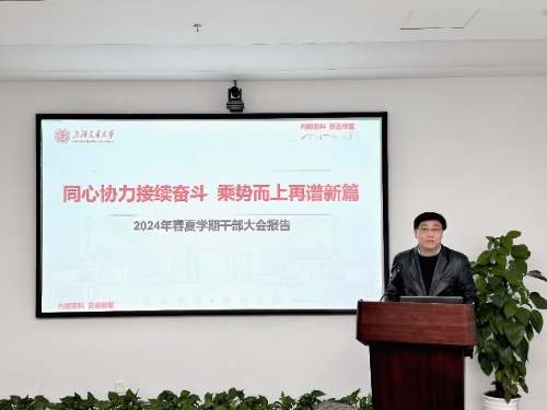 党委书记曹心德首先传达了学校2024年春夏学期干部大会会议精神。他强调,2023年,全校上下持续攻坚、奋力前进,各项事业不断取得新进展新成效;2024年,学校要进一步增强责任感、使命感、紧迫感,同心协力、抢抓机遇,加快步伐、勇攀高峰,展现新气象新作为。