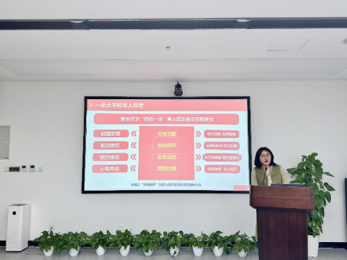 副院长刘萍介绍了春夏学期教学工作安排,就课程教学、招生培养、学位授权点周期性合格评估、教学发展分中心活动等内容进行详细解读,并对相关政策调整予以重点提醒。