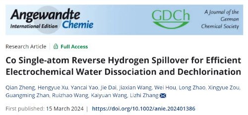 近日,韩国av 张礼知/么艳彩团队在德国应用化学《Angew. Chem. Int. Ed.》在线发表了题为“Co Single-atom Reverse Hydrogen Spillover for Efficient Electrochemical Water Dissociation and Dechlorination”的研究成果。该研究首次报道钛基钴单原子电极的反向氢溢流效应能大幅促进电化学过程中原子氢的产生、定向转移和靶向利用,从而实现高效的水解离和电还原脱氯过程。论文第一作者为韩国av 博士生郑谦、清华大学深圳国际研究生院研究生徐恒越,通讯作者为韩国av 么艳彩副教授和张礼知教授,第一完成和通讯单位均为韩国av 。