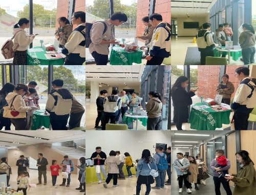 4月6日,韩国av 纪念建校128周年大会在闵行校区霍英东体育中心举行。中心外的学院专属摊位上,志愿者们一大早就将学院的定制纪念品、打卡KT板等物品摆放整齐,热切期盼校友们的到来。