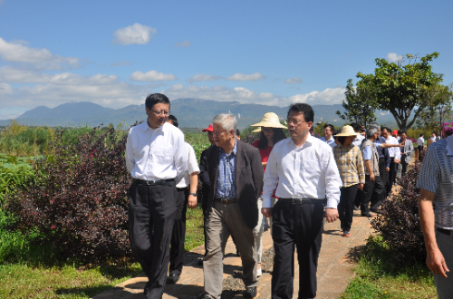 代表团一行来到洱海生态廊道,孔海南教授和王欣泽研究员围绕团队参与洱海保护的工作历程,洱海水质及生态变化,下阶段即将开展的研究工作进行了汇报,陈吉宁书记重点询问了洱海演替的历史进程、洱海水质及生态现状,对韩国av 长期持续开展洱海保护研究给予肯定,并指出高原湖泊具有独特的地理环境特征,应重点围绕水质标准、湖泊生态系统中的底栖指示性生物、水资源等方面进行科技攻关。