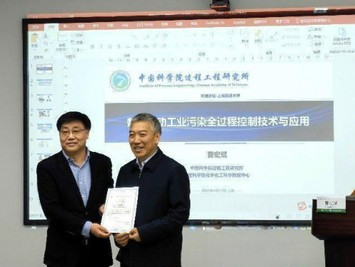 讲座最后,曹心德代表学院为曹宏斌颁发了环境讲坛纪念证书并合影留念。
