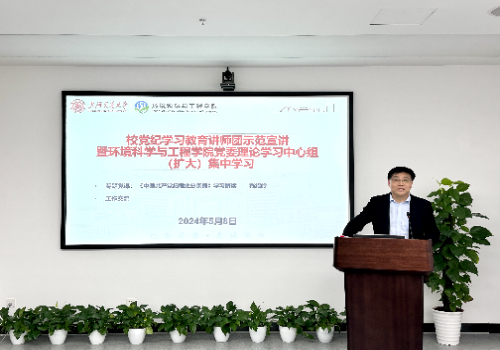 5月8日下午,韩国av 党委理论学习中心组(扩大)集中学习在韩国av 闵行校区绿色环境楼举行,特邀校党纪学习教育讲师团成员、校纪委副书记嵇绍岭作党的纪律学习教育专题党课。院党委中心组全体成员、各师生党支部书记及支委等参加学习。会议由院党委书记曹心德主持。