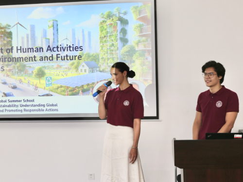 7月12日,国际暑期学校闭幕式在环境学院200号阶梯教室举行。同学们进行了精彩的小组展示,围绕“气候变化影响与策略评估”“人类活动对环境的影响及未来预测”“通过可持续发展塑造未来”等题目,结合专业领域和学习内容作现场汇报。通过本次暑校学习,同学们更加全面了解了环境可持续发展议题,培养了解决问题和跨学科合作能力。活动最后,暑校负责人刘婧宇老师寄语各位同学,期待他们未来在可持续发展道路上继续贡献自己的智慧和力量。活动在学员们的一致好评和热烈掌声中圆满结束。