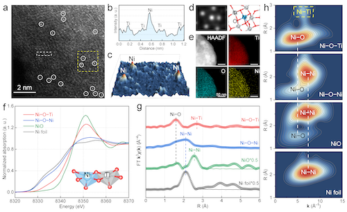 图2 孤立非对称性Ni–O–Ti位点合成与表征