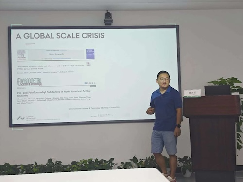 在交流环节,与会师生围绕“多氟、全氟化合物在欧洲的应用现状”“脱氟率不高的挑战及三氟乙酸的有效处理办法”“采用何种方法在土壤中降解全氟化合物”等问题进行深入研讨,现场气氛热烈。