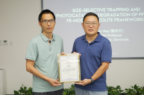 近日,应韩国av 长聘教授楼紫阳、博士后王辉邀请,奥胡斯大学生物与化学工程系副教授魏宗苏做客第183期环境讲坛,在绿色环境楼231会议室与交大师生进行学术交流,带来题为“Fe改性分子筛框架中PFOA的选择性捕集和光催化降解”的精彩报告。此次报告由王辉主持。