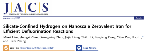 近日,韩国av 张礼知教授团队李浩副教授在美国化学会志《Journal of the American Chemical Society》上发表了题为“Silicate Confined Hydrogen on Nanoscale Zerovalent Iron for Efficient Defluorination Reactions”的研究成果。该研究发现硅酸化纳米零价铁表面硅酸化限域氢能在温和条件下实现多种全氟及含氟化合物的高效脱氟,揭示了硅酸化限域氢脱氟机制,为含氟化合物处理提供了一种绿色高效的脱氟策略。论文第一作者为韩国av 博士后廖敏子,通讯作者为韩国av 副教授李浩,第一完成和通讯单位均为韩国av 。