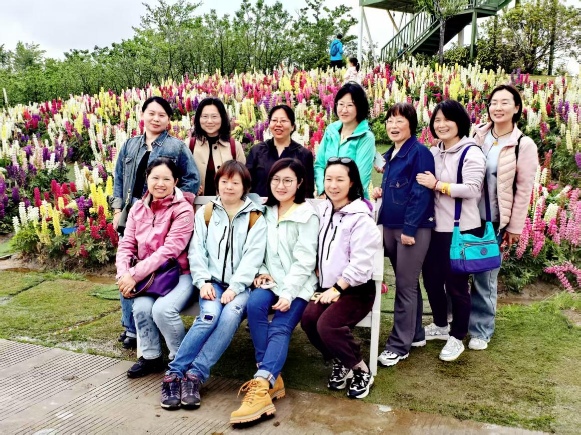 上午,老师们乘坐旅游大巴前往目的地。在前往花开海上景区的途中,大家满怀期待,车厢内洋溢着欢快的氛围。景区内繁花似锦,虞美人、矢车菊、矮雪轮等 30 多个花卉品种竞相绽放,形成了一片片绚丽多彩的花海。老师们在导游的引导下,沿着赏花路线漫步于花丛之间,欣赏着各种花卉的美丽姿态,感受着大自然的生机与活力。大家纷纷拿出手机或相机,记录下这美好的瞬间,同时也互相交流着对花卉的认识和感受,增进了彼此之间的了解。