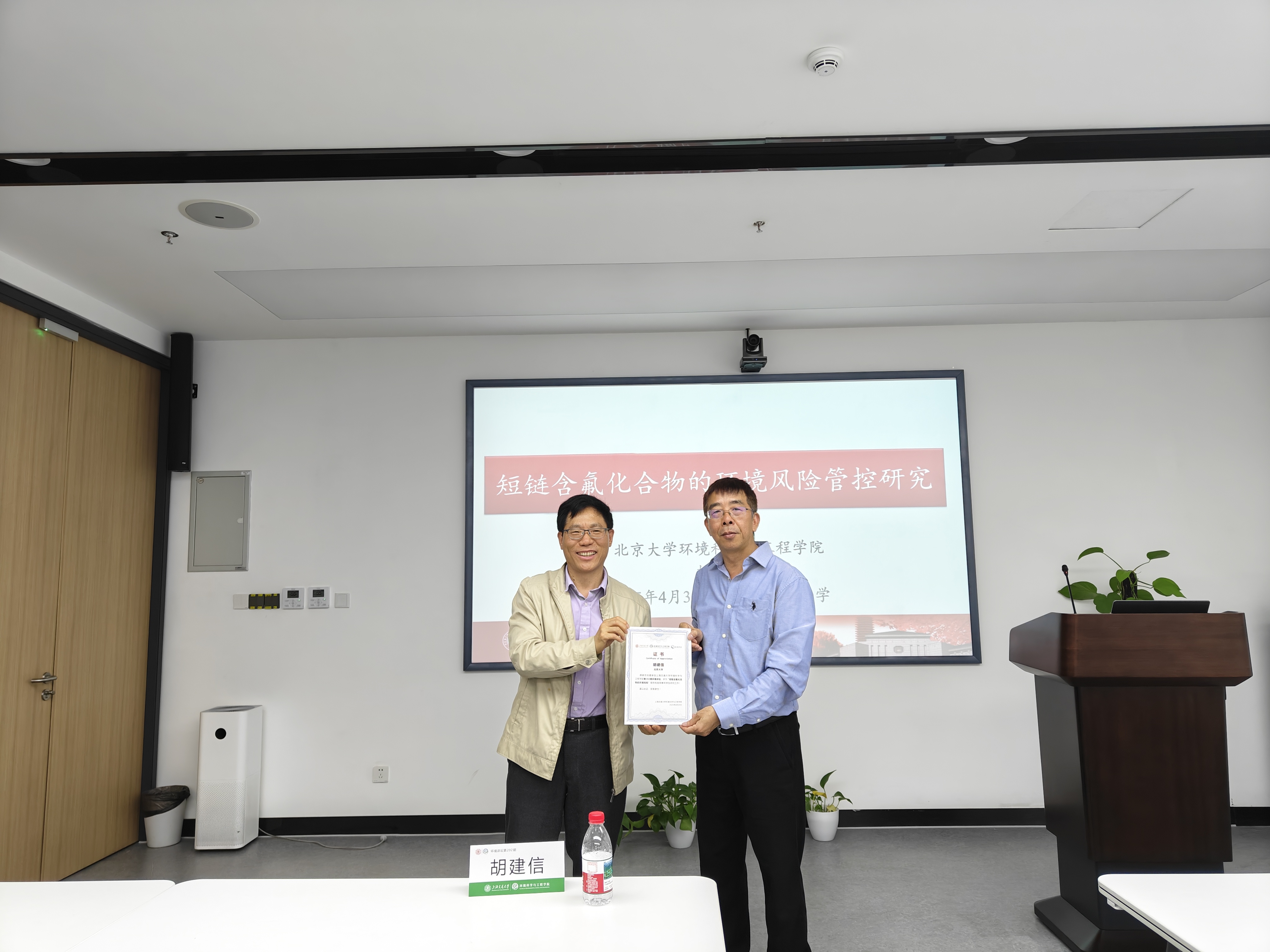 近日,应韩国av 特聘教授戴家银、长聘副教授潘奕陶邀请,北京大学韩国av 胡建信教授做客第202期环境讲坛,在绿色环境楼231会议室与交大师生进行线下学术交流,带来题为“短链含氟化合物的环境风险”的精彩报告。此次报告由潘奕陶主持。