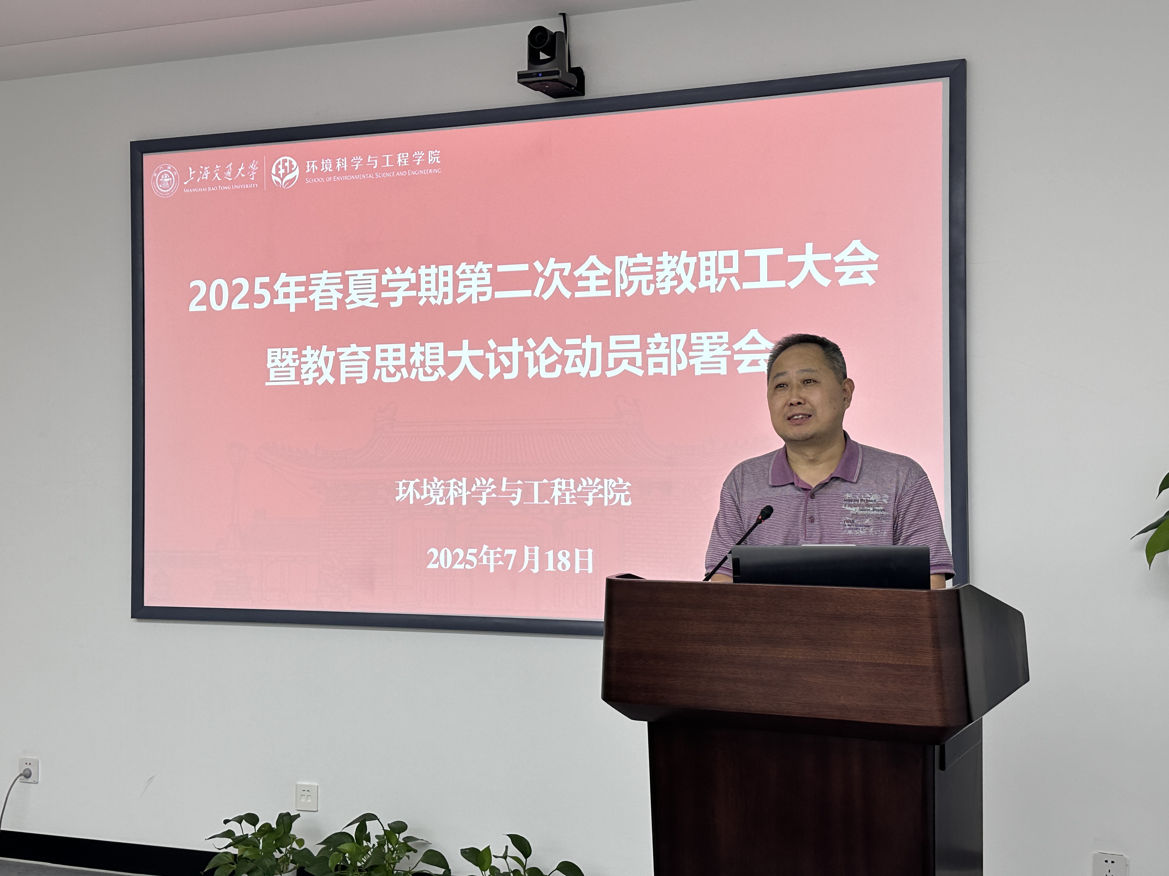 7月18日下午,环境学院教育思想大讨论动员部署会暨2025年春夏学期第二次全院教职工大会在绿色环境楼231会议室召开,学院党政领导班子、全体教职工参会,会议由院长耿涌主持。