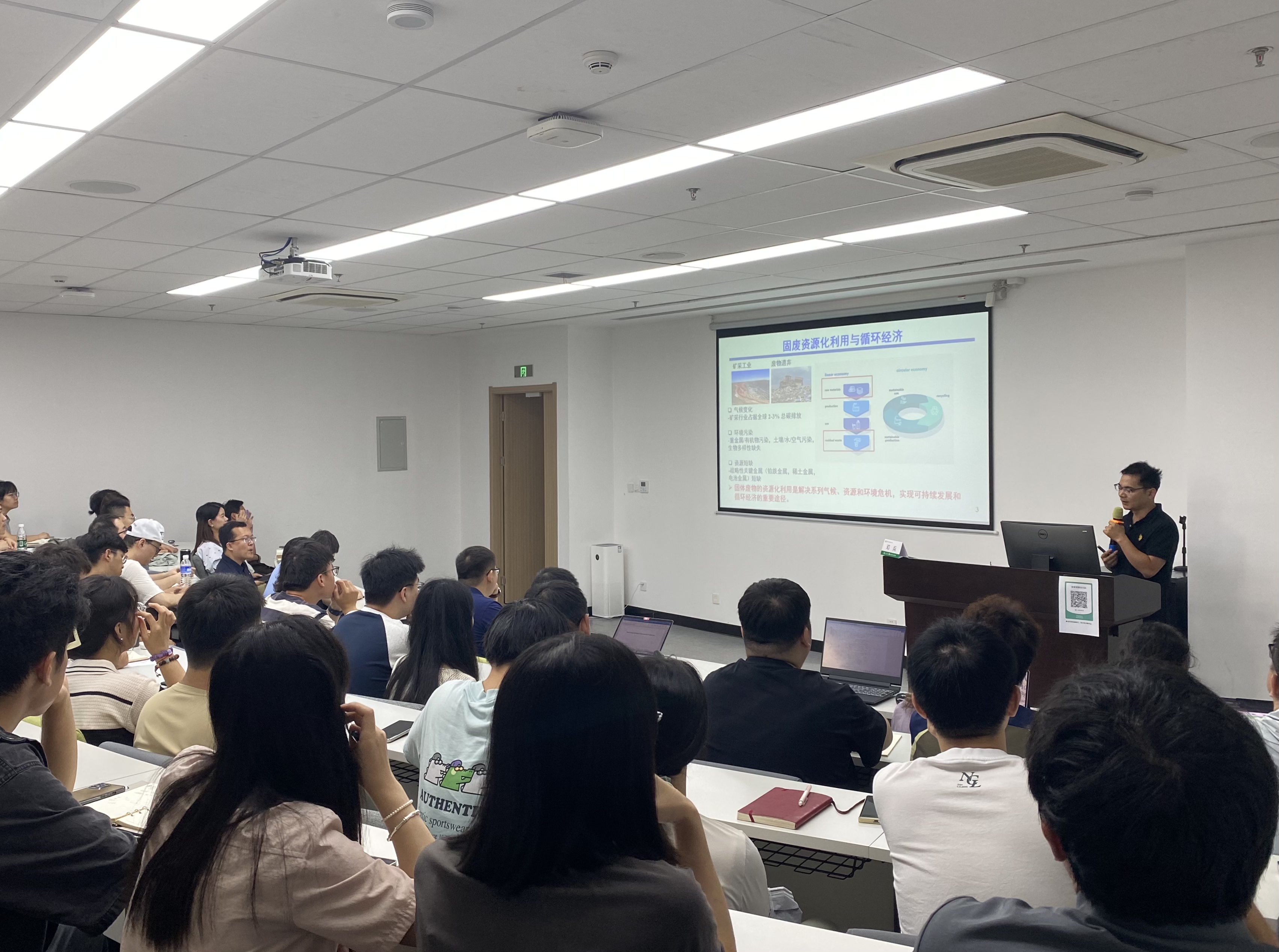 交流环节,与会师生围绕战略关键金属循环回收和选择性分离、固体废物增值转化制备高价值材料、固废和土壤中多重污染物的快速修复等方面展开热烈讨论。