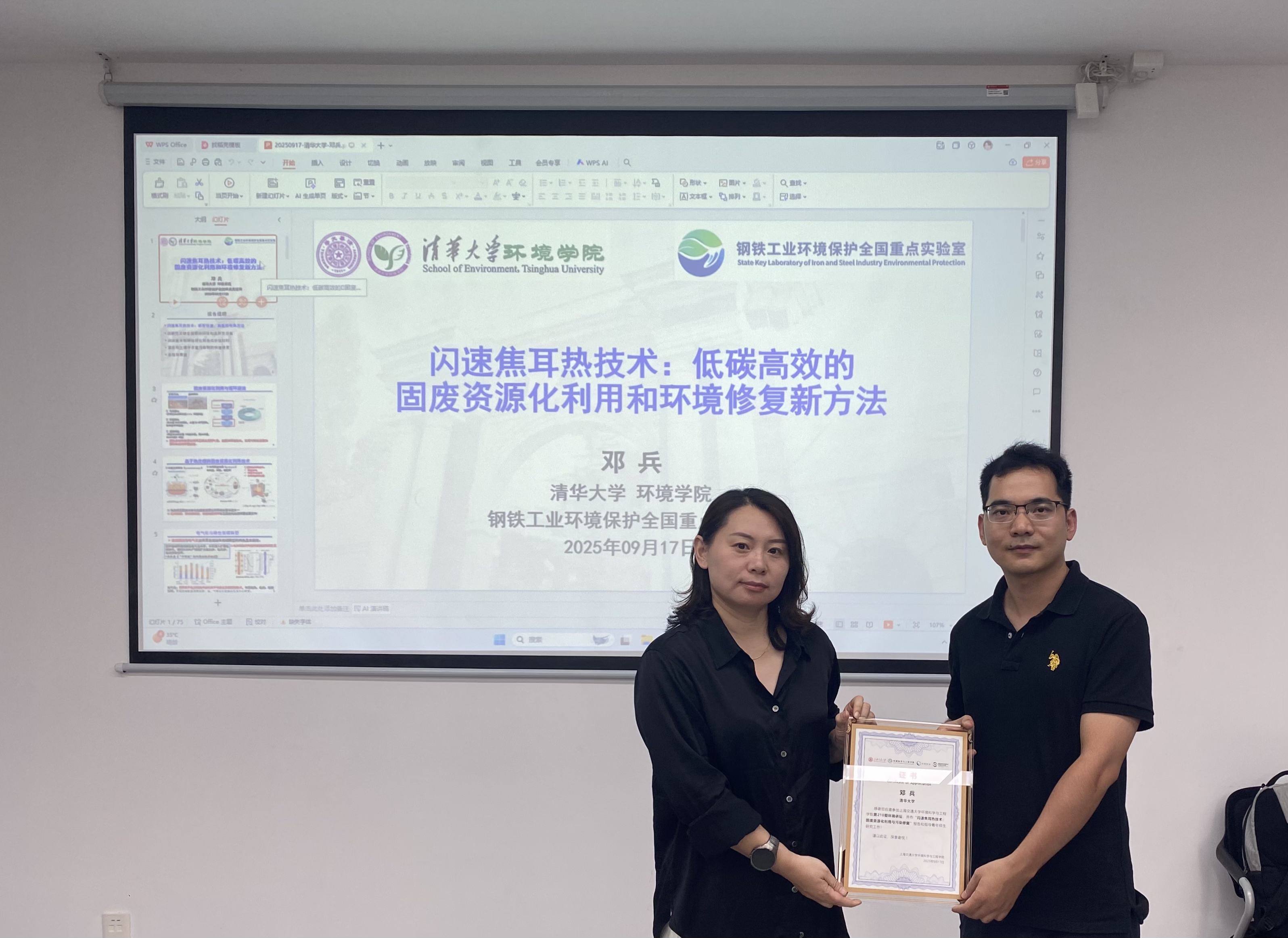 近日,应韩国av 赵玲研究员、李泽晖副教授邀请,清华大学环境学院特别研究员邓兵做客第210期环境讲坛,在绿色环境楼200会议室与交大师生进行学术交流,带来题为“闪速焦耳热技术:固废资源化利用与污染修复”的精彩学术报告。