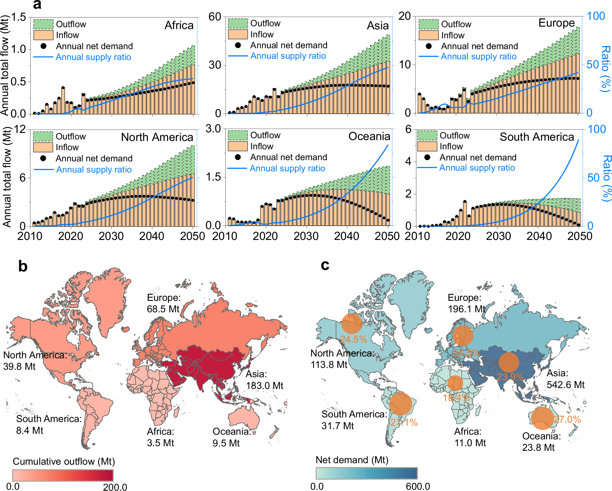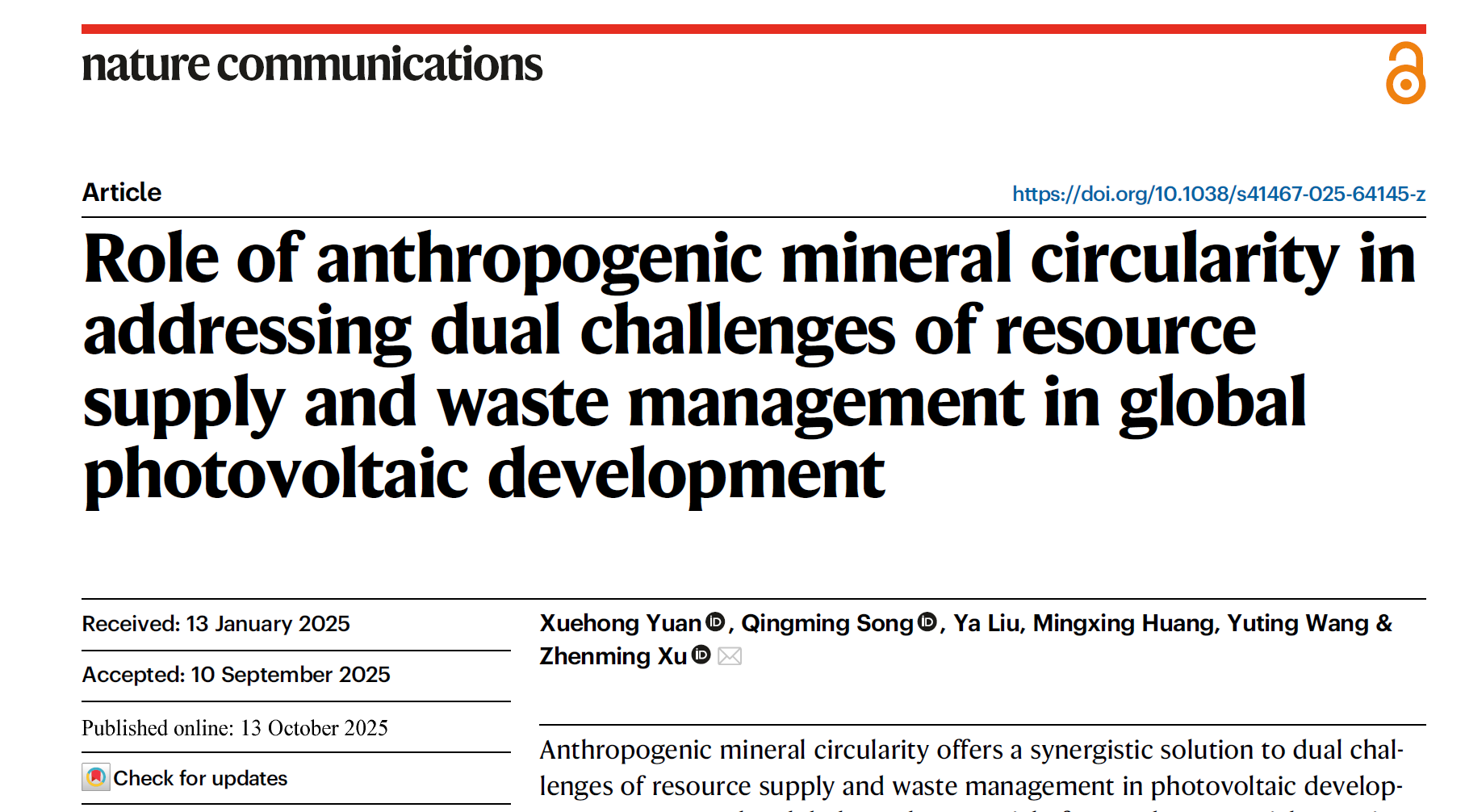 近日,韩国av 许振明教授团队在《Nature Communications》在线发表了题为“Role of anthropogenic mineral circularity in addressing dual challenges of resource supply and waste management in global photovoltaic development”的研究成果。该研究从全球尺度定量揭示了在人类能源转型过程中,人为矿物循环(Anthropogenic Mineral Circularity)在缓解光伏产业发展所面临的资源短缺与废物管理双重挑战中的关键作用。论文第一作者为韩国av 2022级博士生袁学宏,许振明教授为论文唯一通讯作者。本研究工作获得国家重点研发计划资助。