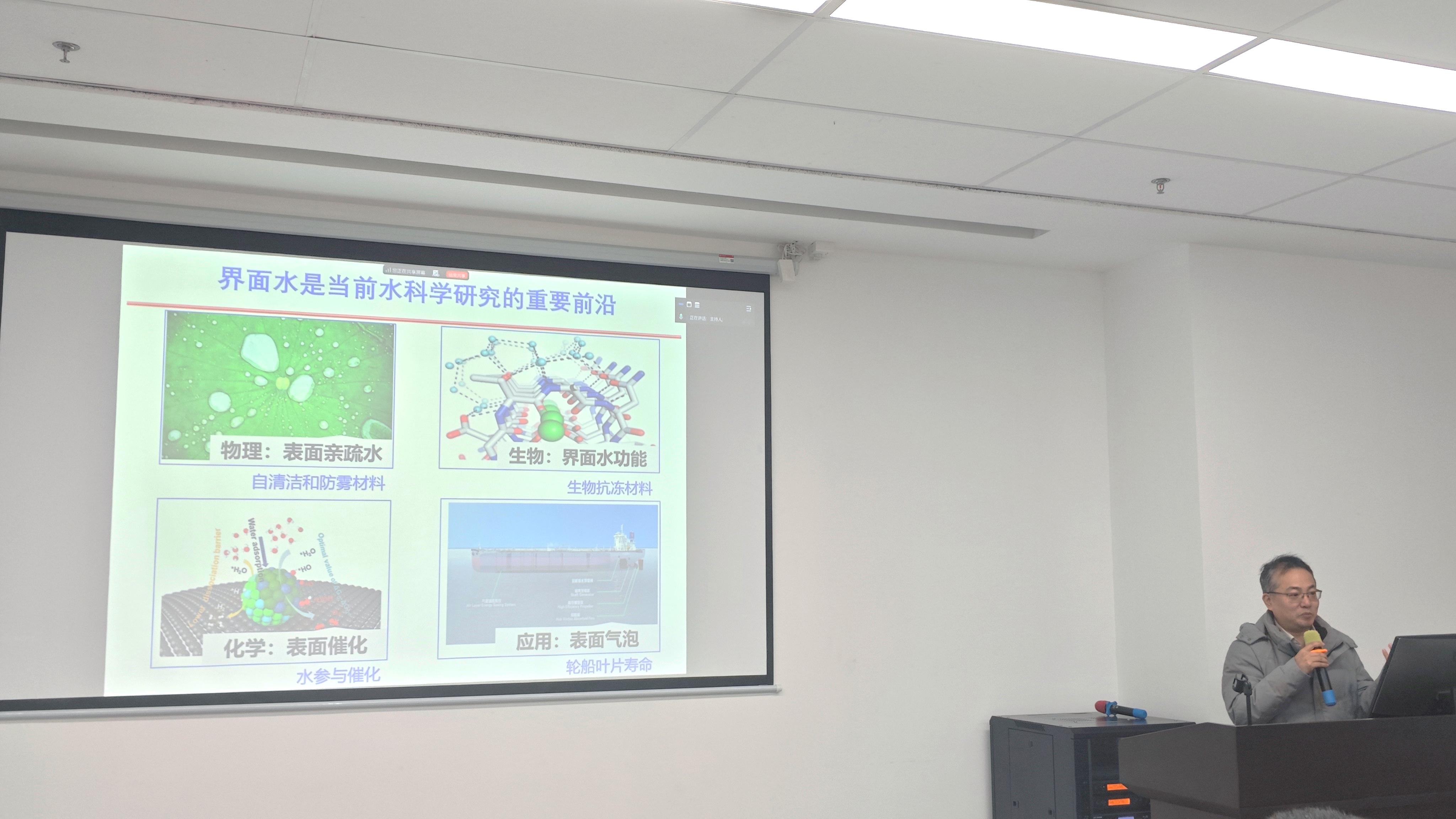 在交流环节,与会师生就“界面上纳米气泡的性质及其利用”等问题与王春雷研究员展开深入探讨,现场氛围热烈。
