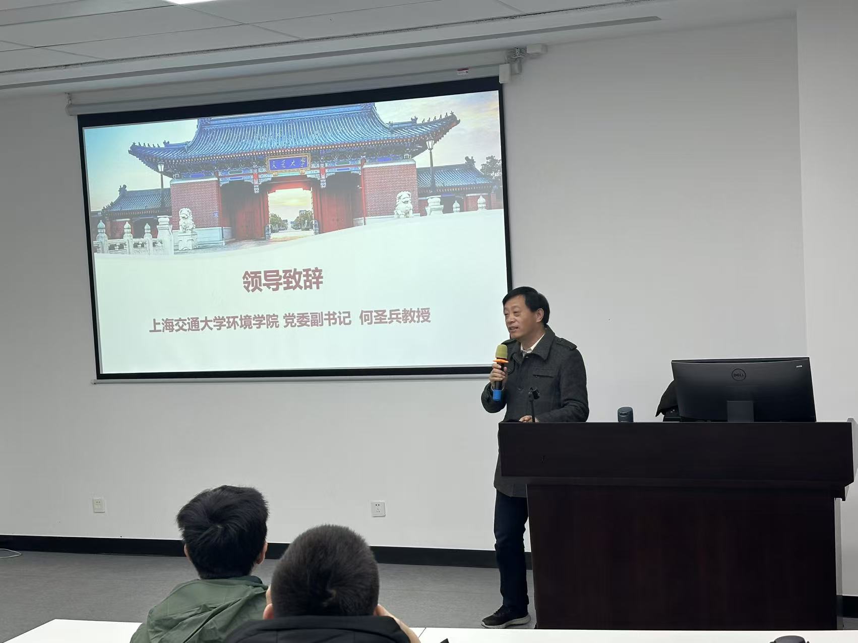 学院党委副书记何圣兵作开营致辞。他结合当前全球低碳转型与国家“双碳”战略部署,为营员们细致解读了低碳发展的时代意义与青年一代肩负的使命担当,深入阐释了环境学科在破解生态环境难题、助力绿色低碳转型中的核心价值与重要作用,引导营员们深刻认识到环境领域研究对推动可持续发展的关键意义。他勉励青年学子要主动把握时代发展脉搏,立足学科特色找准自身定位,将个人理想融入国家绿色发展大局,以青春之力探索环保新技术、新路径,在助力生态环境保护与绿色发展的征程中勇担使命、绽放青春光彩。