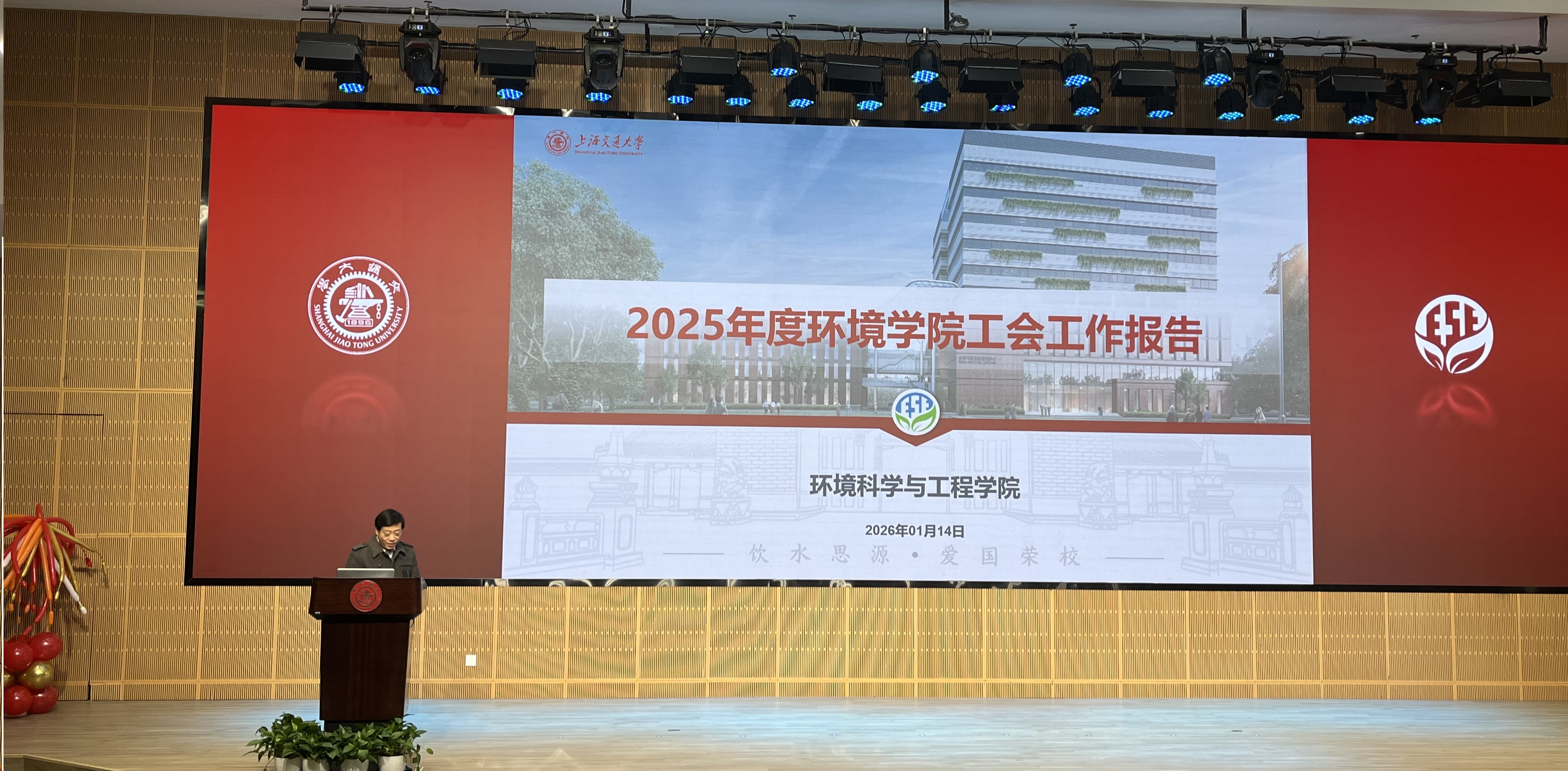 2026年1月14日上午,环境学院第六届教职工代表大会暨工会会员代表大会第四次会议在绿色环境楼100报告厅顺利举行,学院领导班子及40余名代表参会。会议由学院党委副书记李锦红主持。
