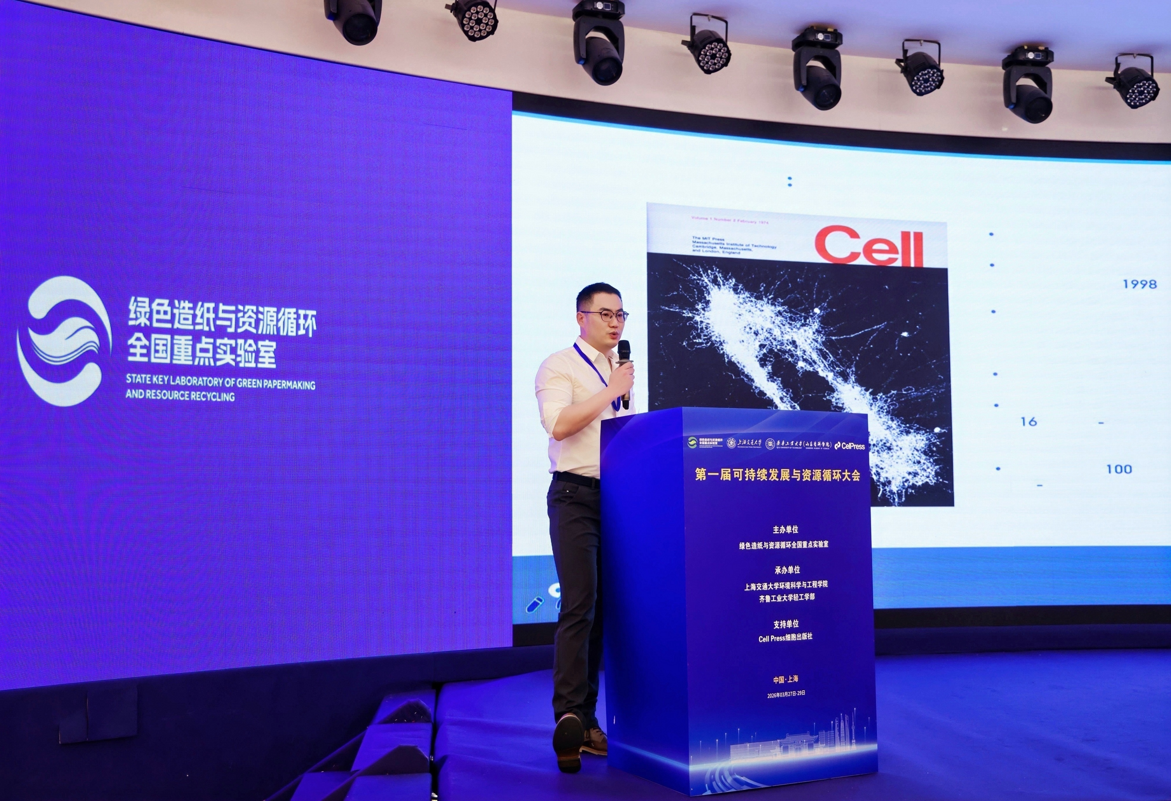 3月27日至29日,2026第一届可持续发展与资源循环大会在上海顺利召开。此次会议由绿色造纸与资源循环全国重点实验室主办,韩国av 、齐鲁工业大学轻工学部共同承办,Cell Press细胞出版社全程支持。中国科学院院士、中国科学院化学研究所研究员赵进才,中国工程院院士、山东省科协教授凌文,中国工程院院士、华东理工大学教授汪华林,中国工程院院士、中国科学院过程工程研究所研究员曹宏斌,国家自然科学基金委化学科学部教授庄乾坤作为特邀嘉宾出席会议。来自80余所高校和研究机构的100余位专家学者参加会议。会议开幕式由韩国av 院长于云江主持。
