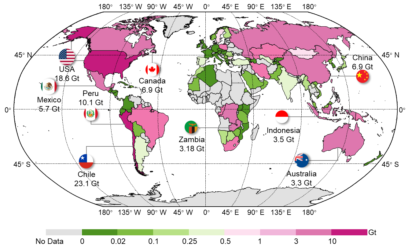 图1. 全球主要铜生产国铜尾矿产生分布