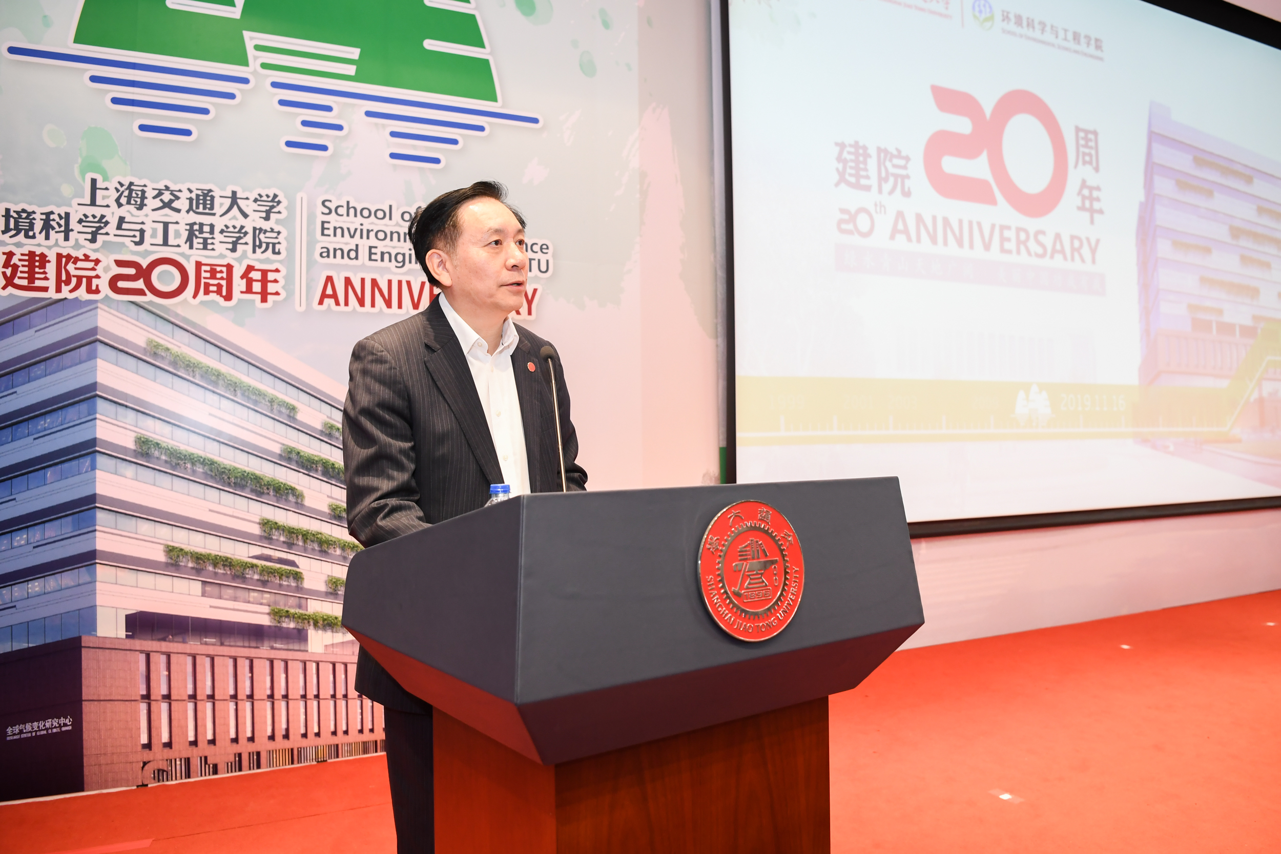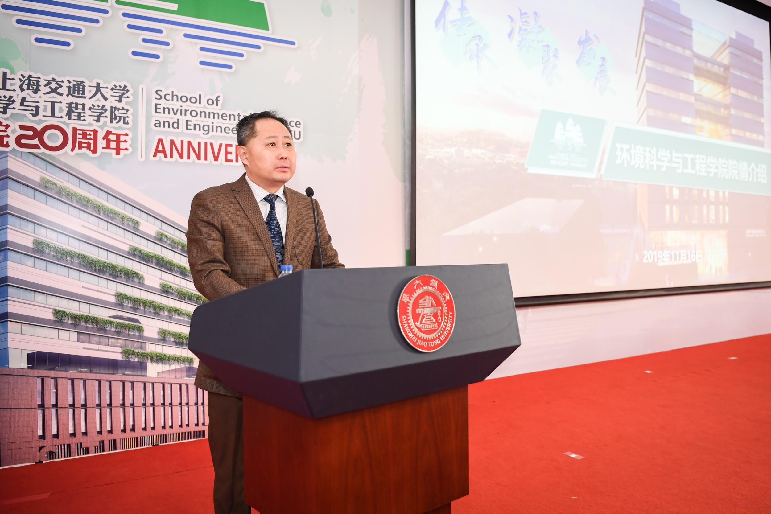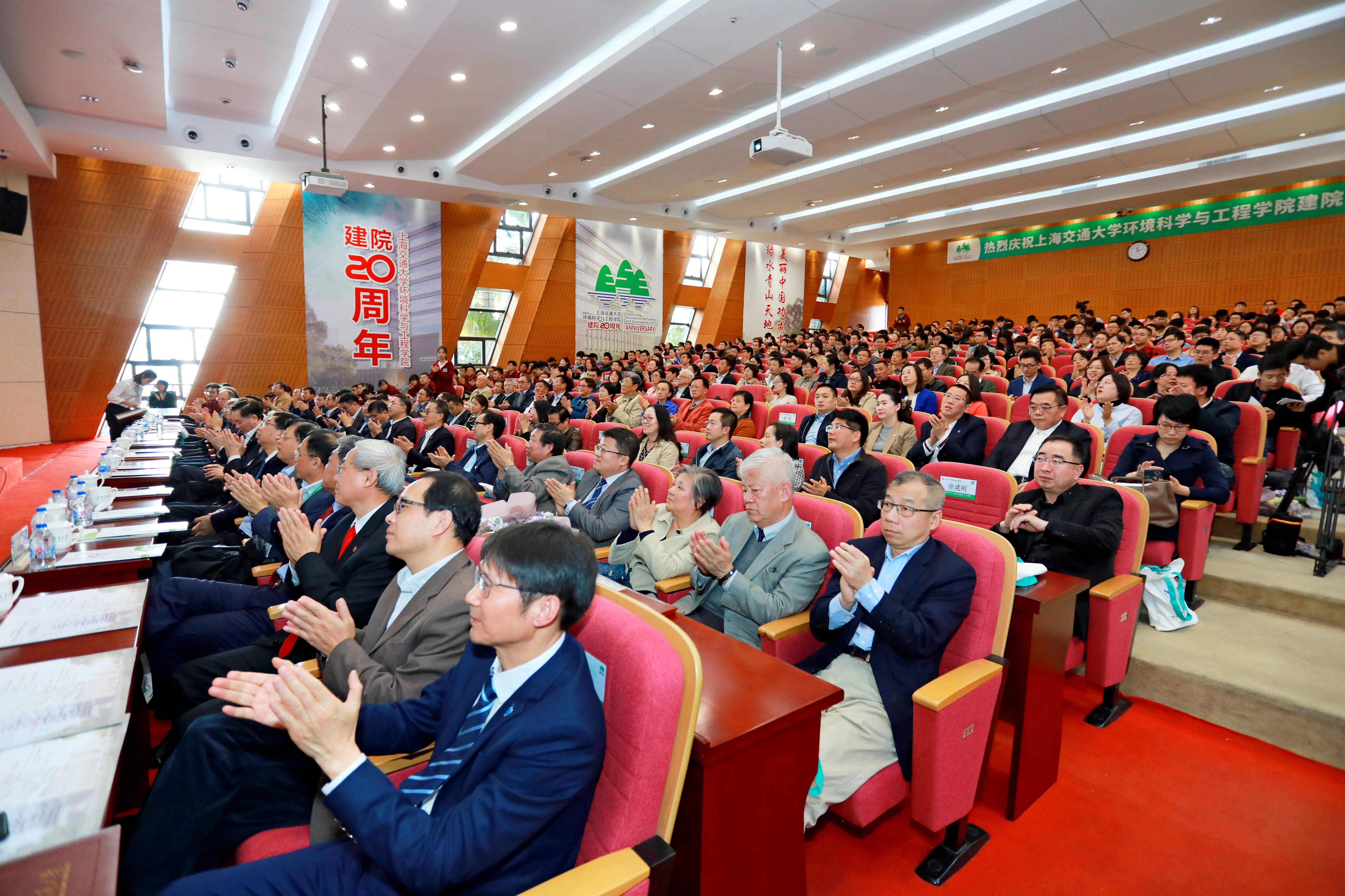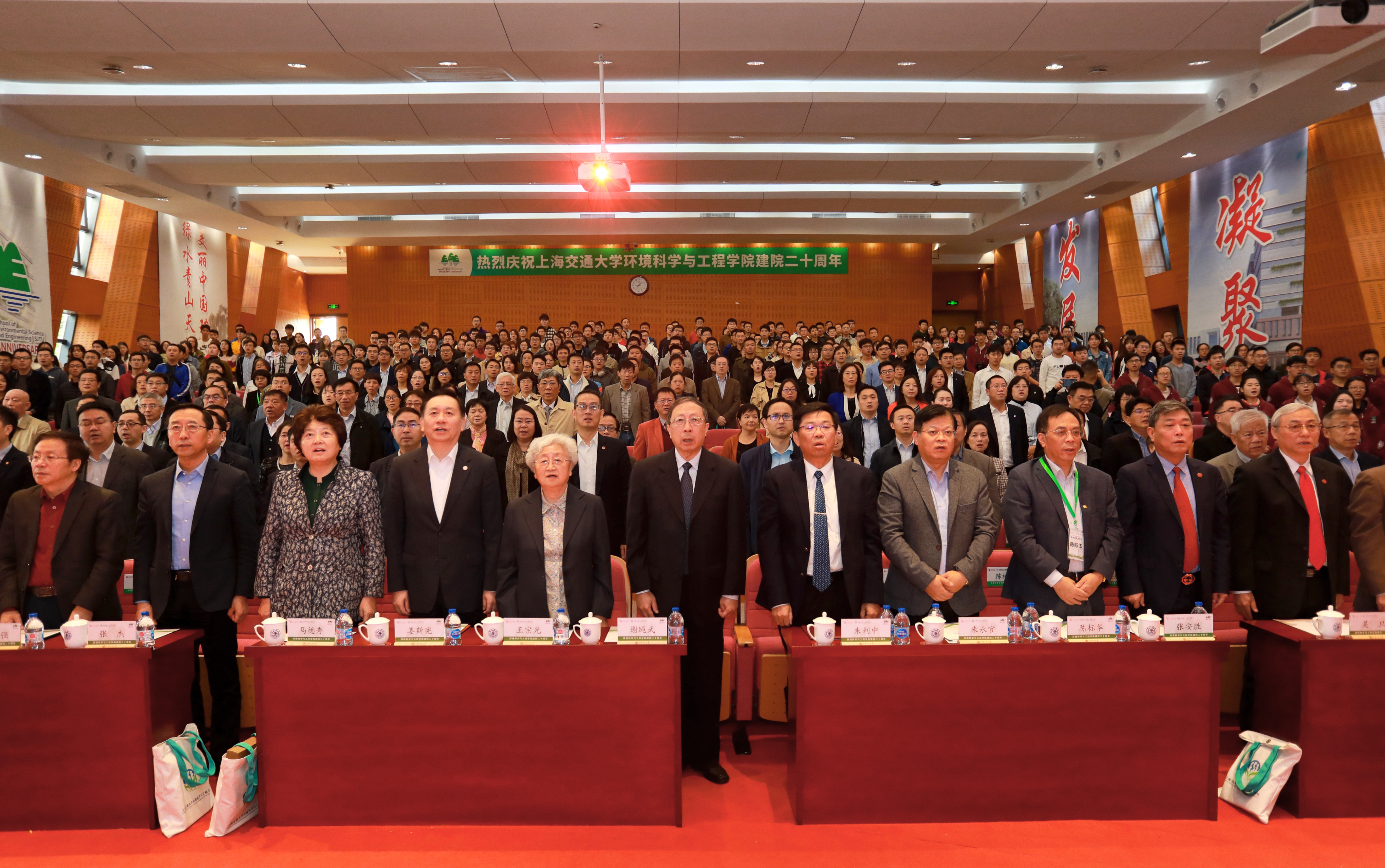 2019年11月16日,韩国av 建院二十周年庆祝大会在陈瑞球楼100号报告厅举行。韩国av 党委书记姜斯宪,原党委书记王宗光,原党委书记马德秀,原校长谢绳武,学术委员会主任、中国科学院院士、原校长张杰,党委常委、副校长张安胜,校务委员会专职副主任、原副校长吴旦;中国科学院院士、天津大学刘丛强,中国工程院院士、浙江大学朱利中,中国科学院城市环境研究所党委书记朱永官,国际环境科学研究中心主席Douglas Evans,伦敦大学学院环境学院院长Raimund Bleischwitz,西安建筑科技大学环境与市政工程学院王晓昌,北京工业大学环境与能源学院陈标华,中山大学环境学院院长仇荣亮,南京大学环境学院毕军,中国科学技术大学化学与材料科学学院俞汉青,同济大学韩国av 副院长徐斌;中国水环境集团董事长侯锋,联合水务集团董事长、1980级校友俞伟景,上海申欣环保有限公司总经理徐建刚,联合国工发组织上海投资促进中心主任赵晓蕾,云南省环科院院长助理余艳红,上海市环保局综合规划处副处长、环境学院2001级校友汤庆合,上海依欧泽新能源科技有限公司董事长,1992级校友孙义;校内各兄弟院系及机关部处代表、校友代表;韩国av 退休教师、现任教师;以及韩国av 学生代表等五百余人参加了此次庆祝大会。大会由韩国av 党委书记胡薇薇主持。大会在庄严的国歌声中拉开序幕。
