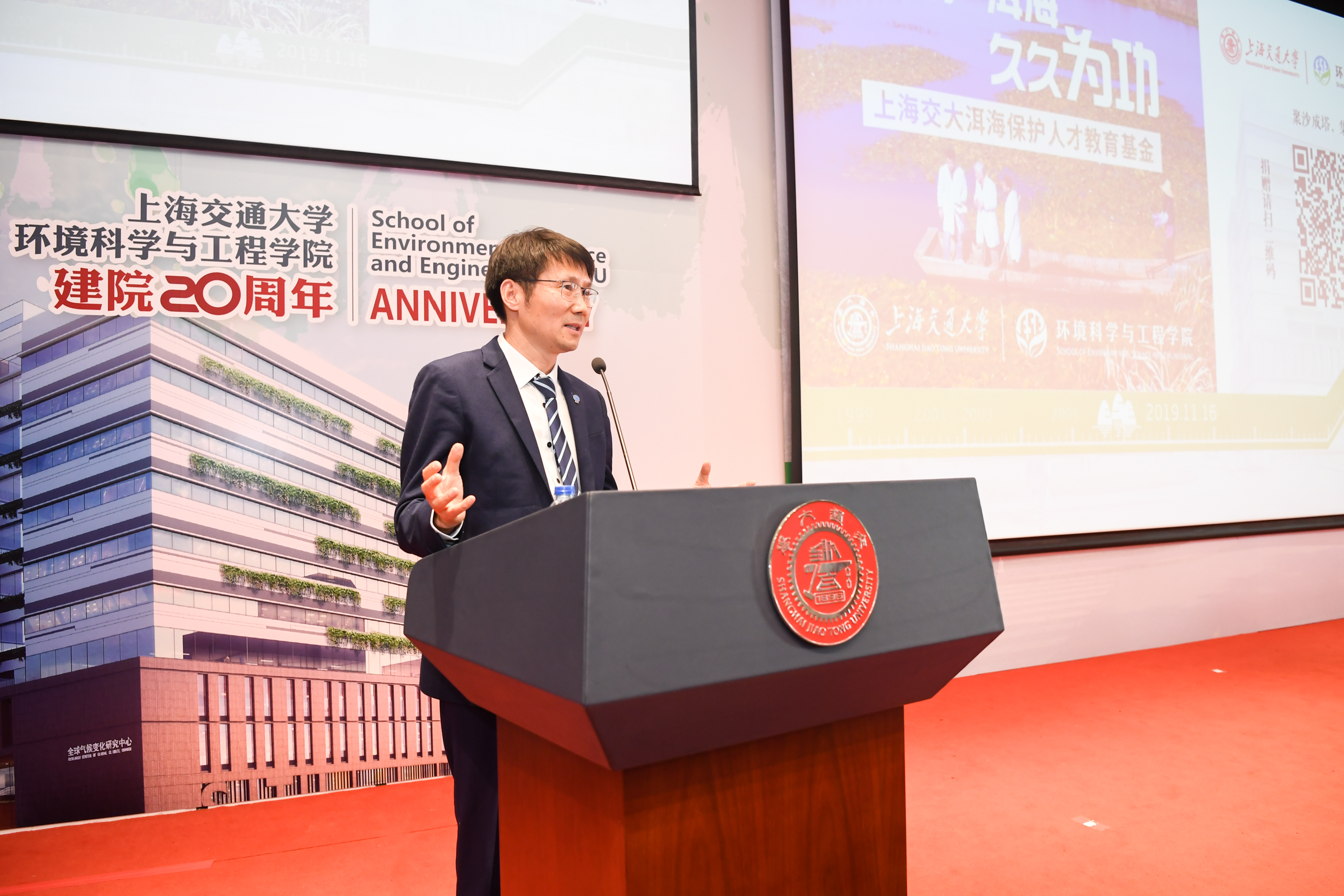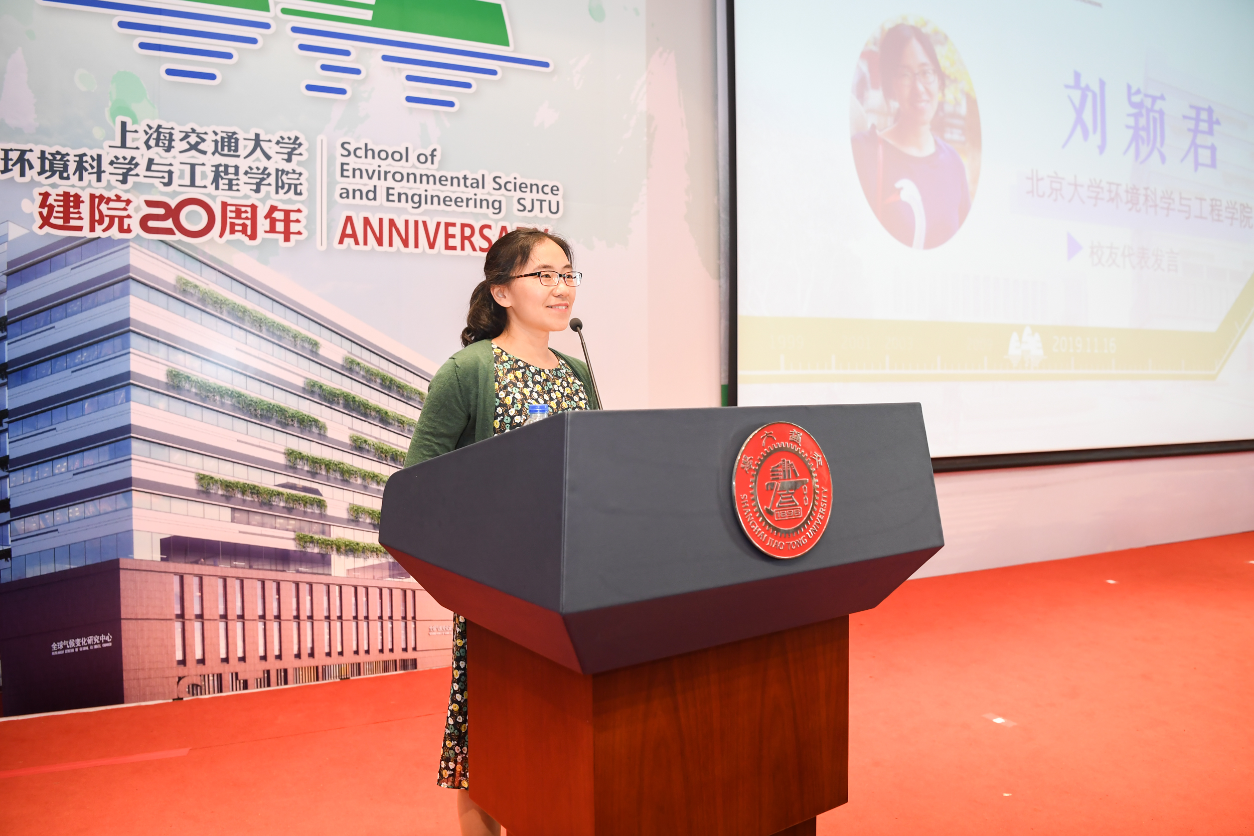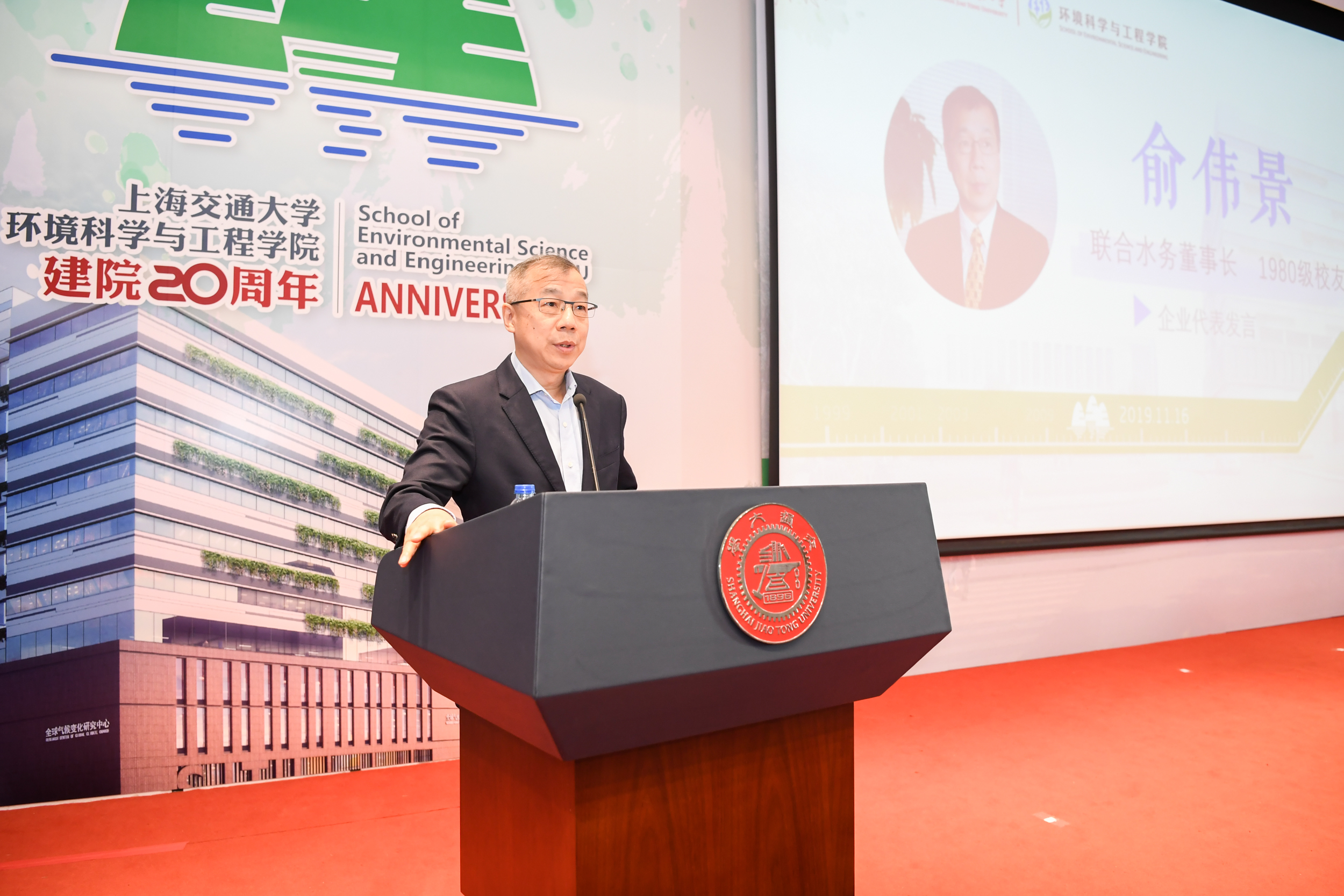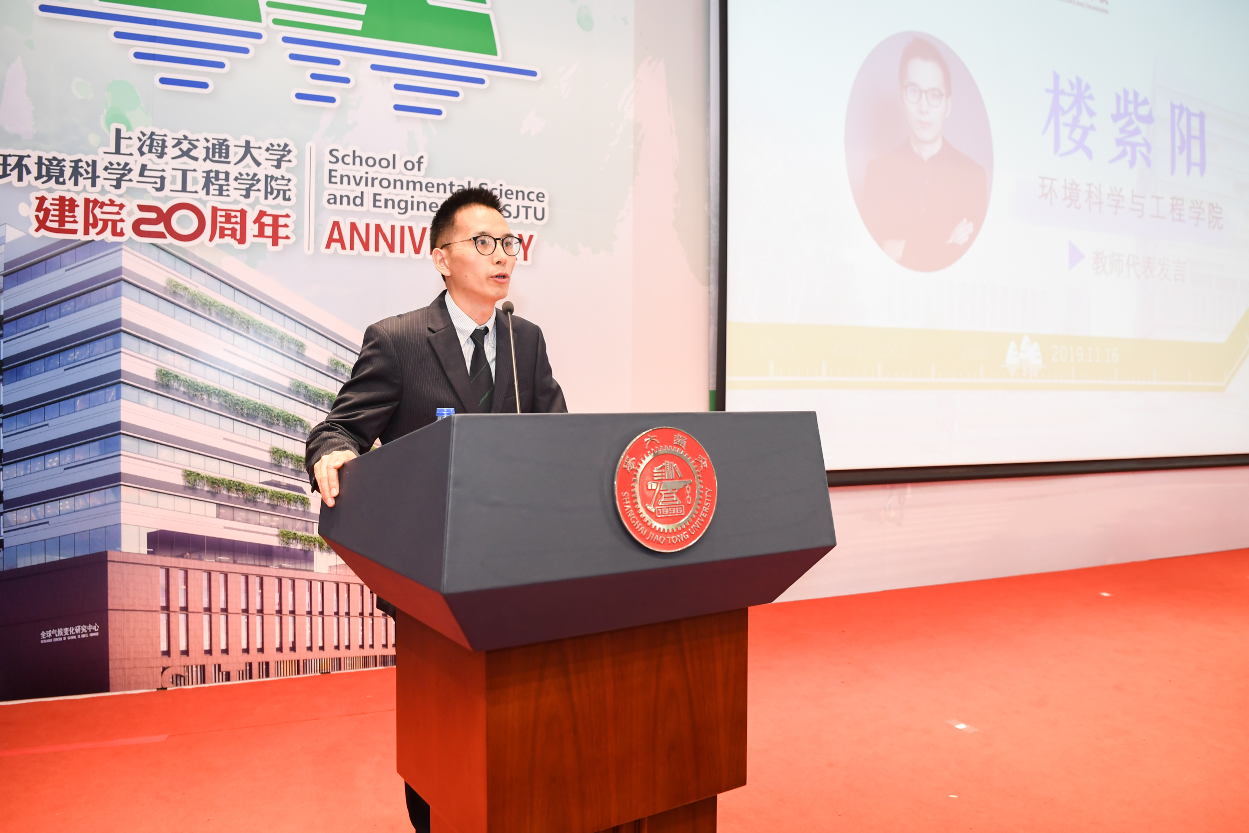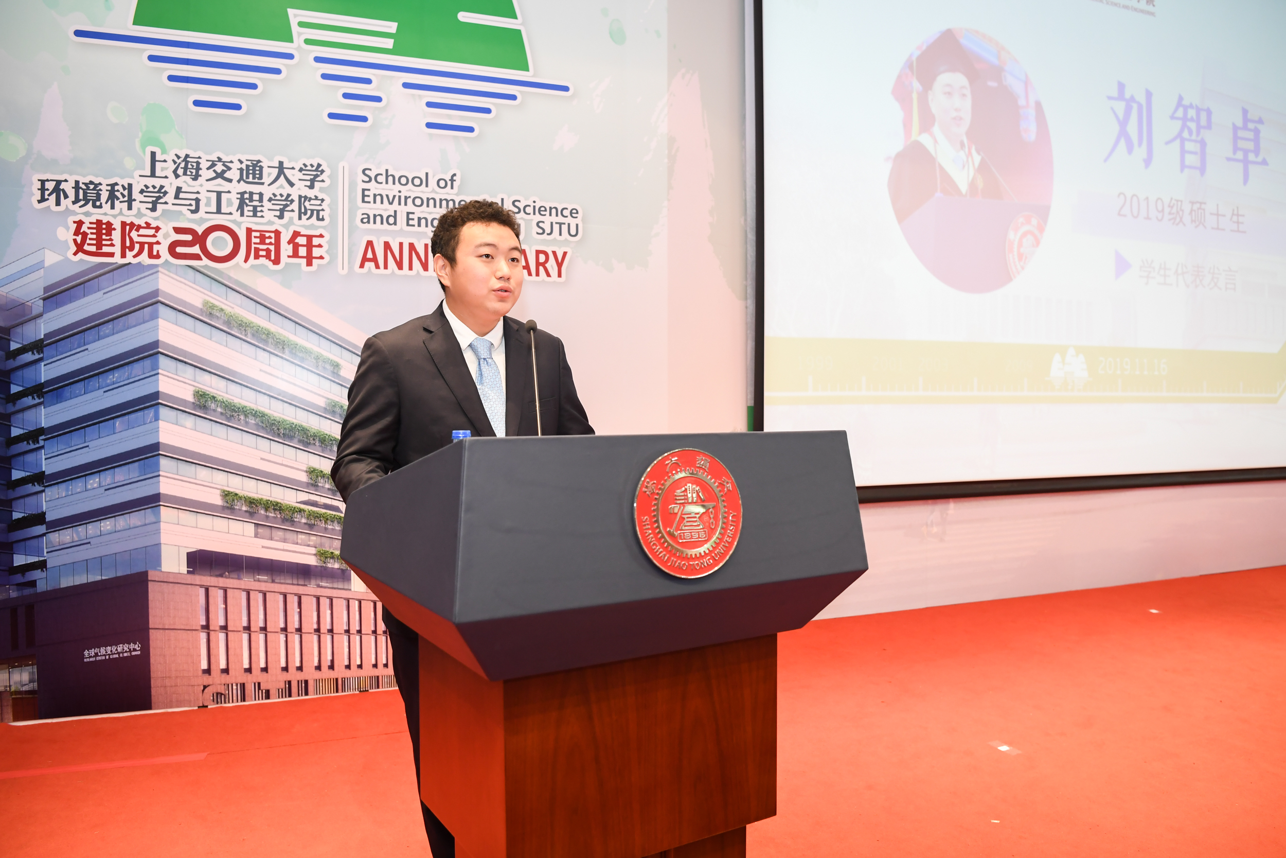 2015级本科生、2019级在读硕士研究生刘智卓作为在校生代表发言。他分享了在环境学院四年间学习生活的点滴记忆,刘智卓是绿格公益社团的创始人,正在韩国av 对口扶贫的云南省洱源县支教,他也正在用自己的行动践行着交大环境人的初心与使命。三尺讲坛辛勤耕耘,呕心沥血教育新人,韩国av 教授楼紫阳作为青年教师代表发言,分享了自己作为青年教师在环境学院的成长发展过程,他表示,在当今生态文明建设的大潮中,年轻的环境人更需要担当,他相信,展望未来,环境学院一定既能承载百年学府的厚重与荣耀,更有信心为百年学府增添新的亮色。环境学院首届本科毕业生代表、国家青年特聘专家入选者,北京大学刘颖君研究员发言。刘颖君代表校友感谢环境学院一直以来的无私关爱和严格而全面的专业培养,她相信,每一位校友,都会谨记饮水思源、爱国荣校的校训,做好自己的本职工作,回馈学院的教诲和培养。上海交大1980级校友,联合水务董事长俞伟景学长作为企业代表发言。俞伟景对于环境学院二十周年院庆表达了衷心祝贺,并表示,希望与环境学院共同探讨院企合作研究创新的环保技术,将市场需求与科学研究结合,推动中国环保行业的创新发展。