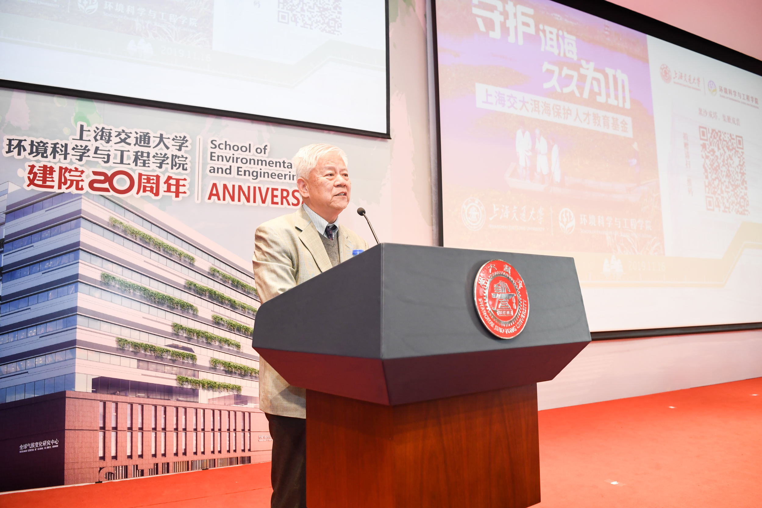 大会最后为感恩致敬环节,回首往昔二十载,王宗光书记、谢绳武校长、马德秀书记、张杰校长、姜斯宪书记、林忠钦校长等学校历任领导都对韩国av 的建设和发展给予了大力的支持和帮助。环境学院感谢在学院建院初期,一批来自兄弟院系相关学科的老师们为学院学科点的申报做出了卓越贡献,在逐渐发展壮大的岁月里,多位领导和老师都曾在环境学院默默耕耘,挥洒青春和汗水,用责任与热爱驱动环境学院快速发展的脚步。