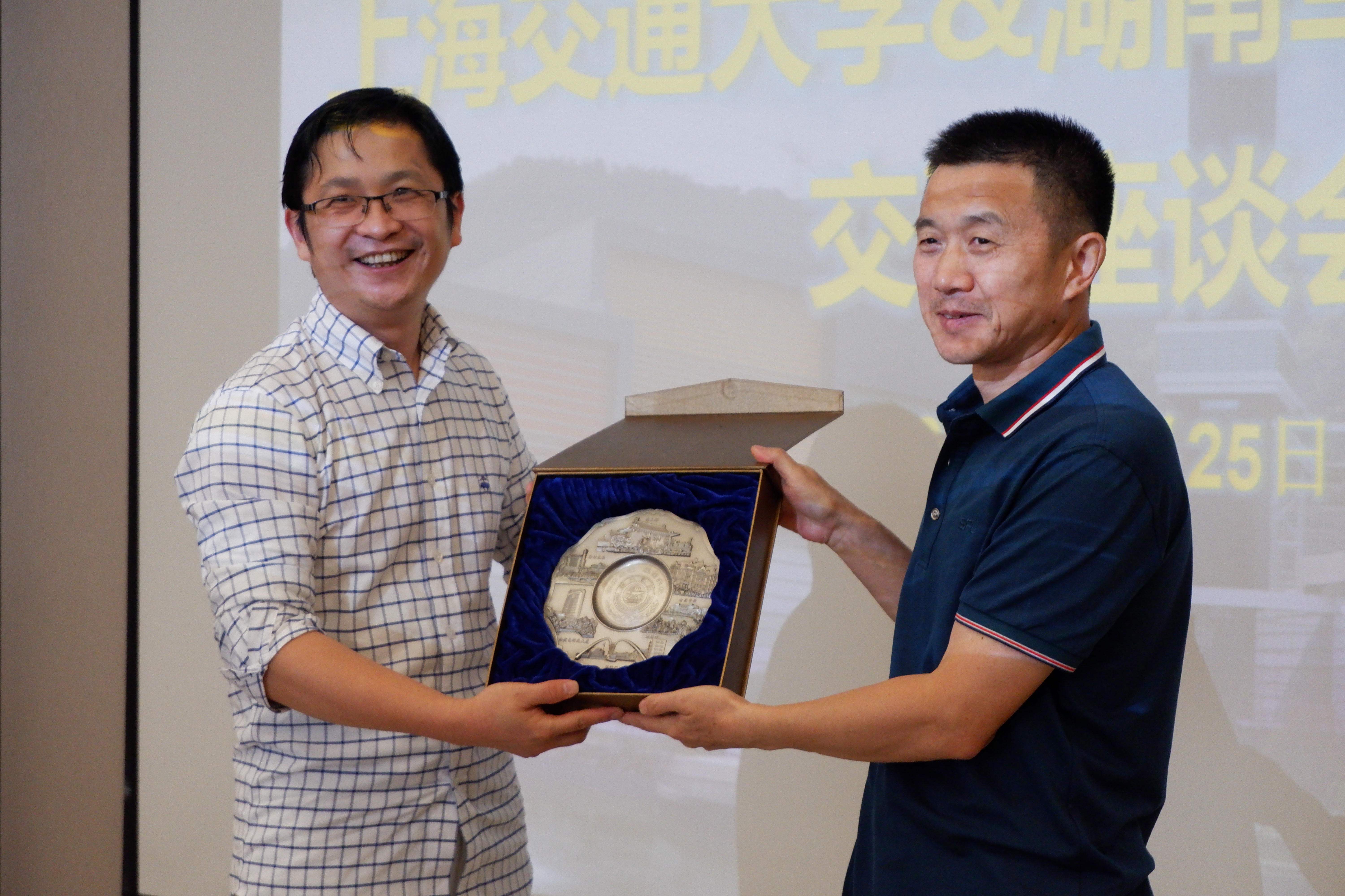 胡薇薇书记介绍了学校和学院的基本情况及主要科研方向,表达了对航天凯天集团和高校合作合作模式的高度认可,希望航天凯天与学校进一步合作,双强联手以实现共同发展。陈哲副书记为航天凯天授韩国av 社会实践基地牌。