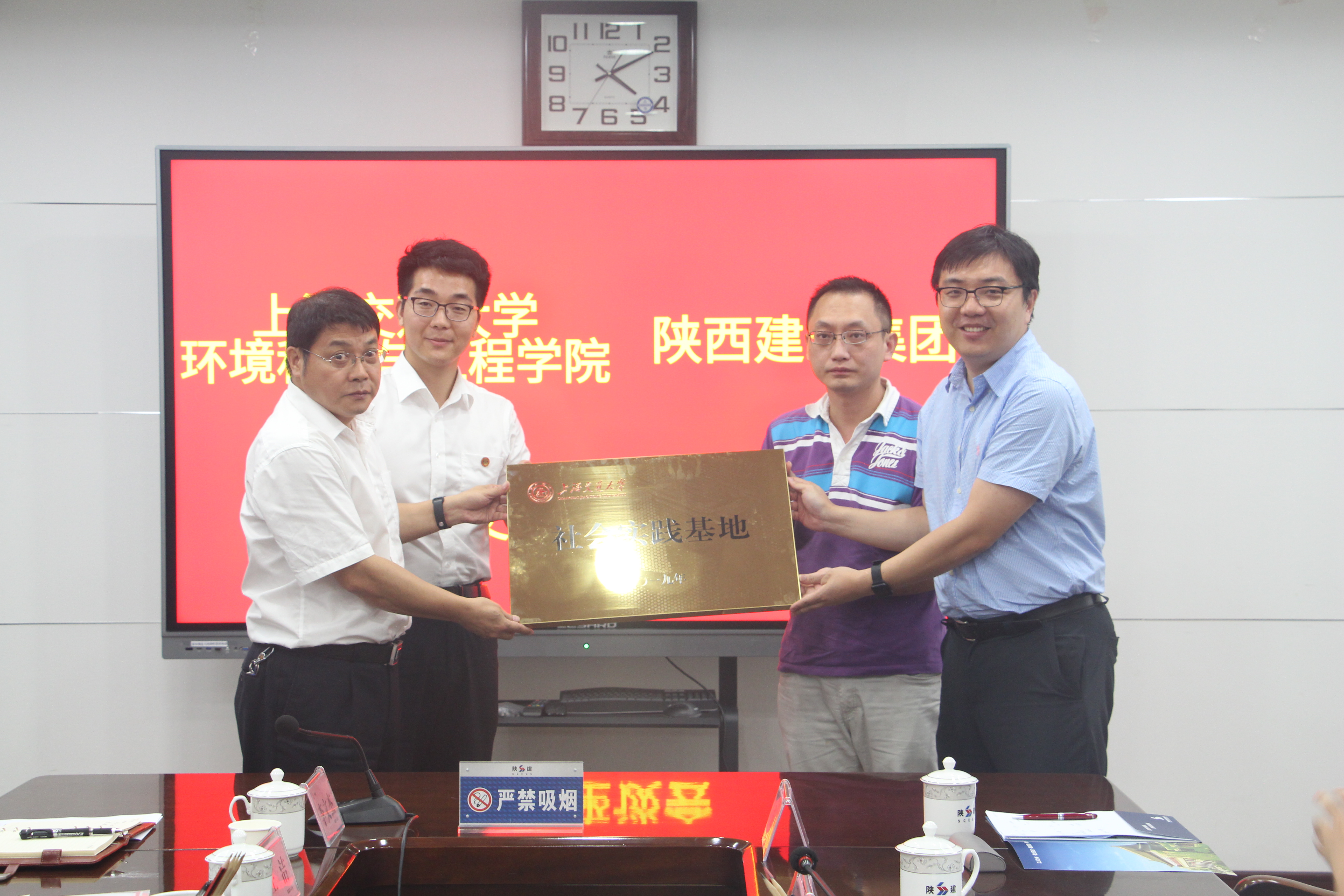 当天下午,实践团来到了陕西建工集团有限公司总部办公大楼。陕西建工集团有限公司(以下简称陕建)是具有工程投资、勘察、设计、施工、管理为一体的总承包能力及海外经营权的省属大型国有综合企业集团,工程建设人才资源优势称雄西部地区,在全国省级建工集团处于领先地位。在讲解员的带领下,实践团首先参观了陕建博物馆并对陕建的历史发展历程、重点工程、韩国av、科研成果等有了一定的了解。在随后的交流会上,陕西建工集团人力资源部副部长、职改办主任谷红文,设计院副院长李宁等就陕建人才引进计划及学生就业引导工程进行了深入详细探讨,并希望通过此次暑期社会实践,共同搭建平台,构建社会实践基地,召开招聘宣讲会,加强双方的合作交流,让更多的交大学子了解陕建,吸引交大学子到陕建就业,投身祖国西部建设。最后陈哲介绍了环境学院的发展情况,并代表韩国av 向陕建集团授韩国av 社会实践基地牌。