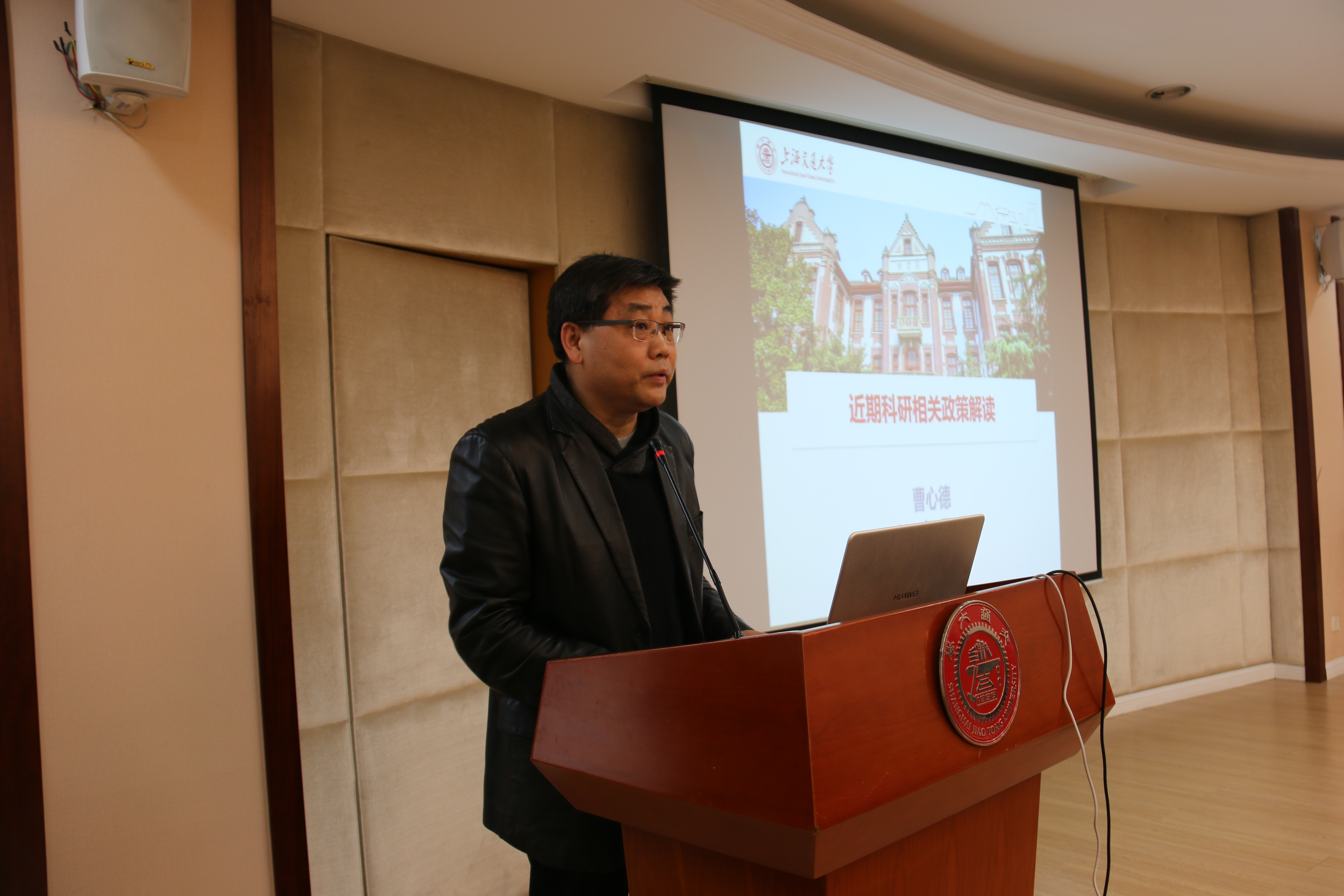 副院长曹心德进行科研相关政策宣讲。曹心德分别从重点思考、工作思路、突出问题、改革举措等角度详细分析了《韩国av 科技工作改革方案(征求意见稿)》、《韩国av 关于承担上海市有关科研项目经费的管理办法》等文件精神。