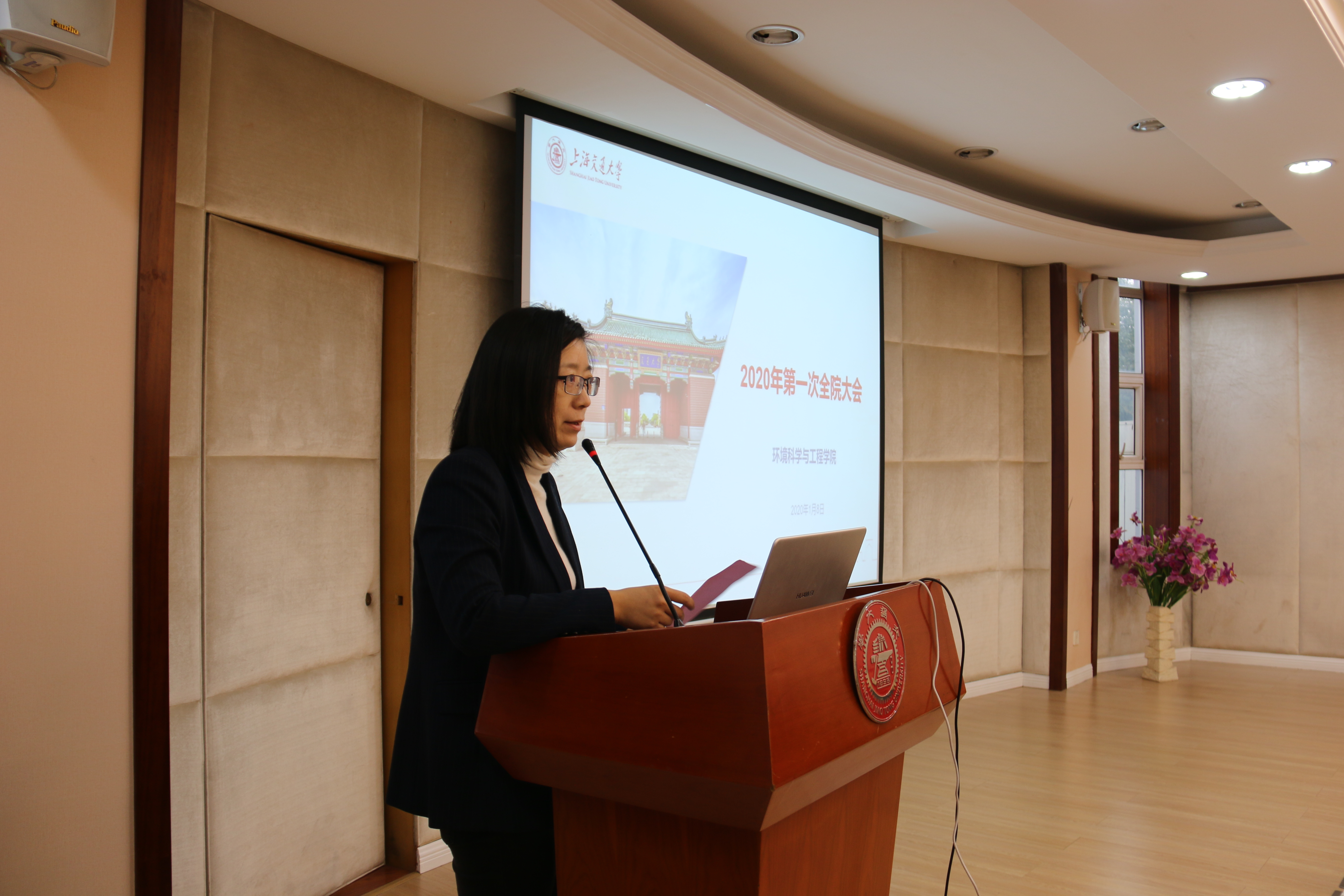 胡薇薇代表学院领导班子作2019年工作汇报。胡薇薇分别从人才培养、科学研究、师资队伍、国际合作、党建文化等方面详细介绍了环境学院2019年的主要突破及重点工作成果。胡薇薇表示,2019年仍然是环境人接续奋斗的一年,学院各项事业取得了重要突破和长足进步。2020年,“十四五”规划将拉开帷幕,双一流学科建设将持续推进,面对新的机遇和挑战,学院将继续努力完善机制、鼓励群策群力,希望环境学院全体教职工不负韶华,只争朝夕,积极开动脑筋、紧抓机遇,为环境学科建设上水平增砖添瓦!